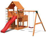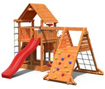 Plac zabaw drewniany duży Rainbow Fortress Tip domek, zjeżdżalnia, drabinka, schodki, lina i ścianka wspinaczkowa