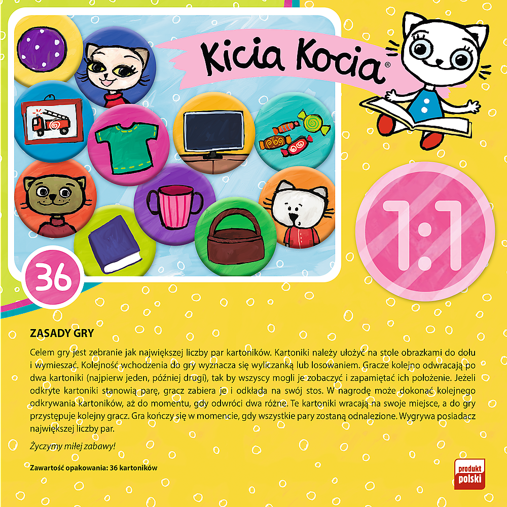 - Gra z bohaterami bajki o przygodach Kici Koci polegająca na łączeniu takich samych obrazków w pary.