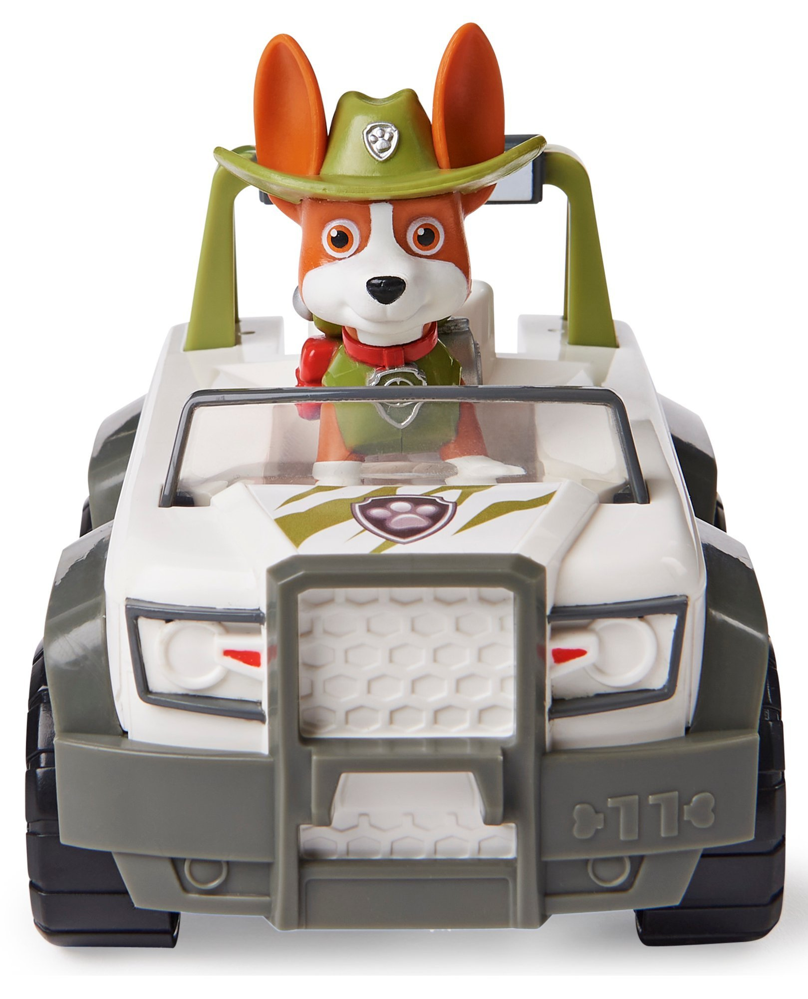 - Figurka wiernie odzwierciedlająca pieska Trackera, rasy Canine, który jest nowym bohaterem Psiego Patrolu. Ma sierść w kolorze brązowym, biały pyszczek i łapy. Ubrany jest w zieloną kamizelkę i kapelusz. Szczeniaczka można umieścić na miejscu kierowcy.