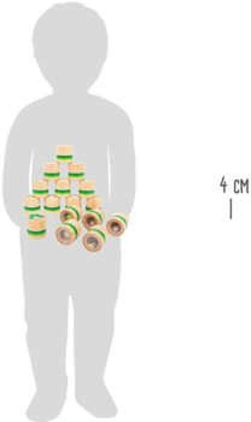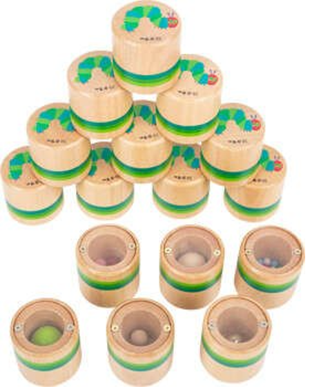 Gra dla maluchów typu Memory, która polega na odgadnięciu słyszanych dźwięków. Składa się z 16 drewnianych puszek, które zdobią zielone pierścienie.