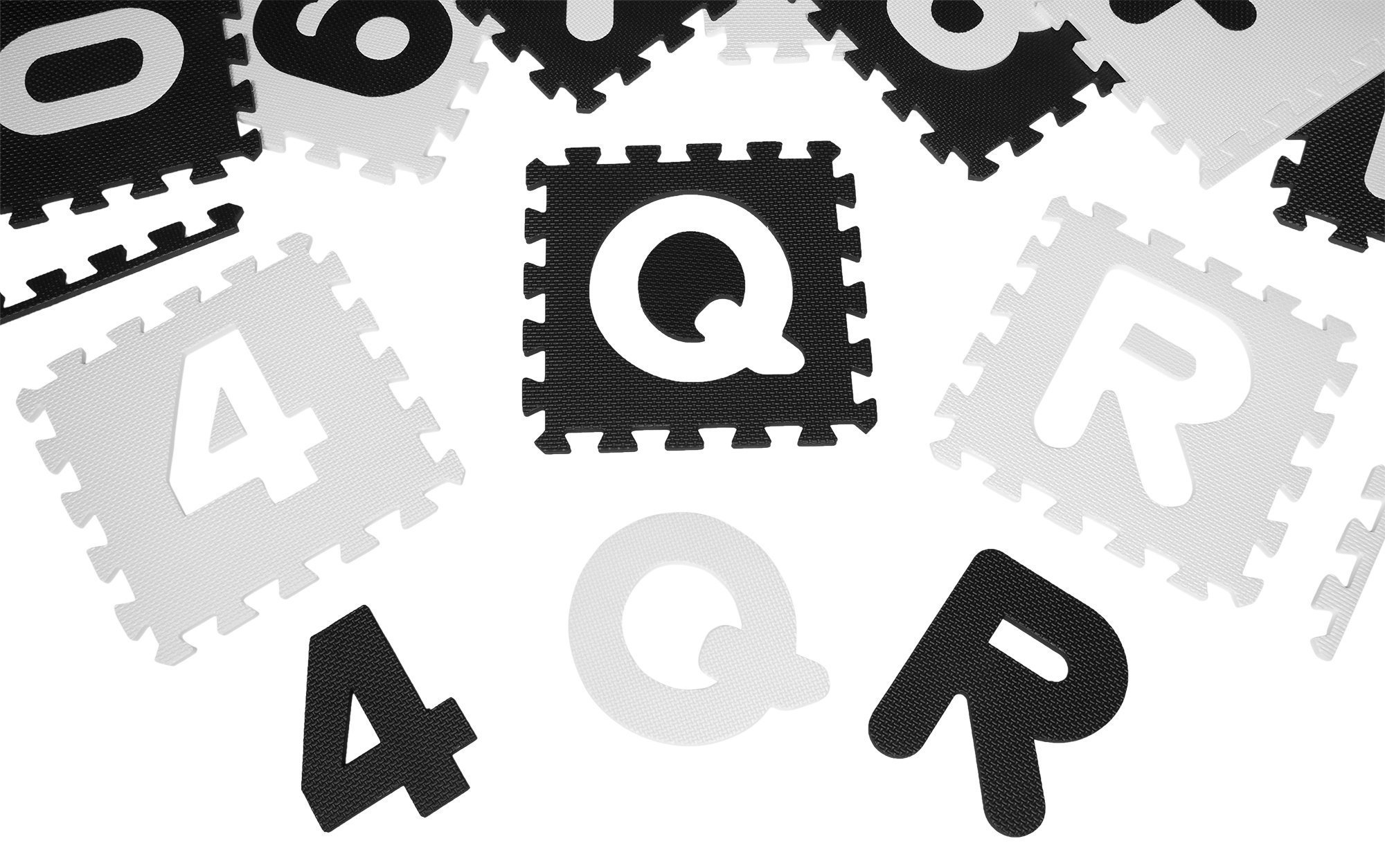 Humbi Mata edukacyjna Grube Puzzle piankowe 31,5 x 31,5 x 1 cm 96 elementów Cyfry Liczby Cyferki Litery Alfabet Literki biały czarny