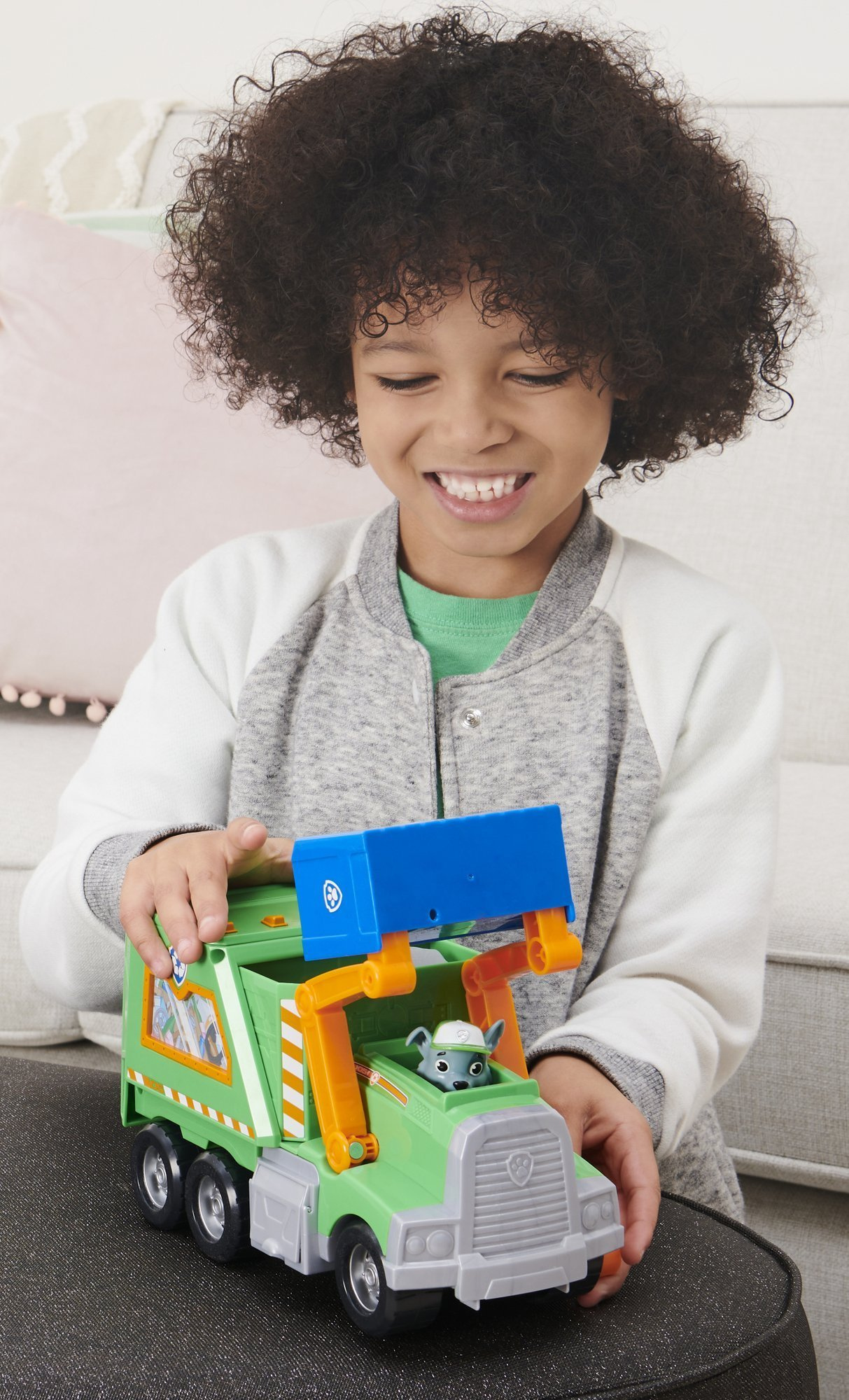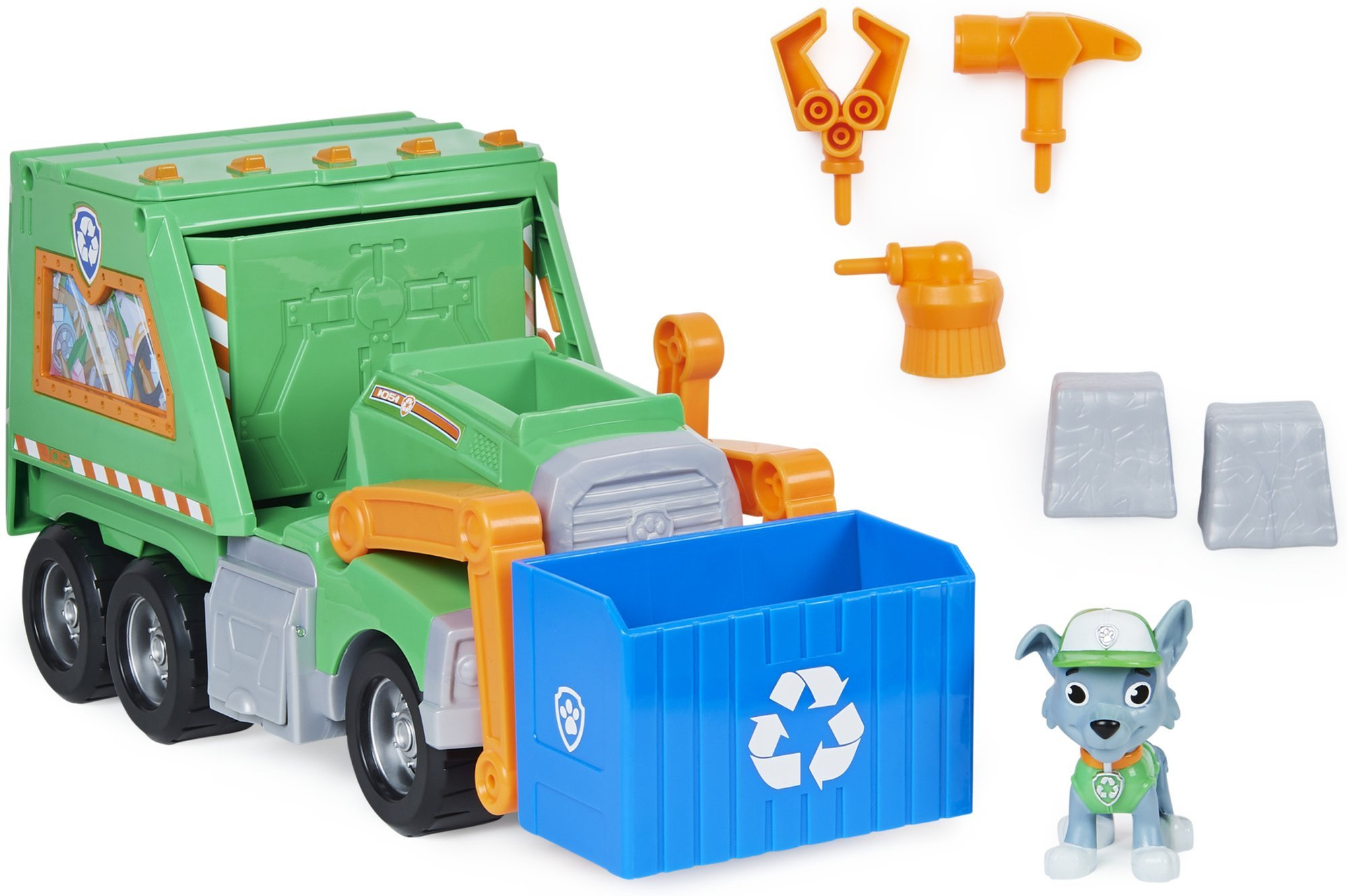 - Zestaw składa się z figurki pieska Rocky'ego, dużej śmieciarki z możliwością zmiany narzędzi i akcesoriami. Zabawka na podstawie bajki Psi Patrol od Spin Master