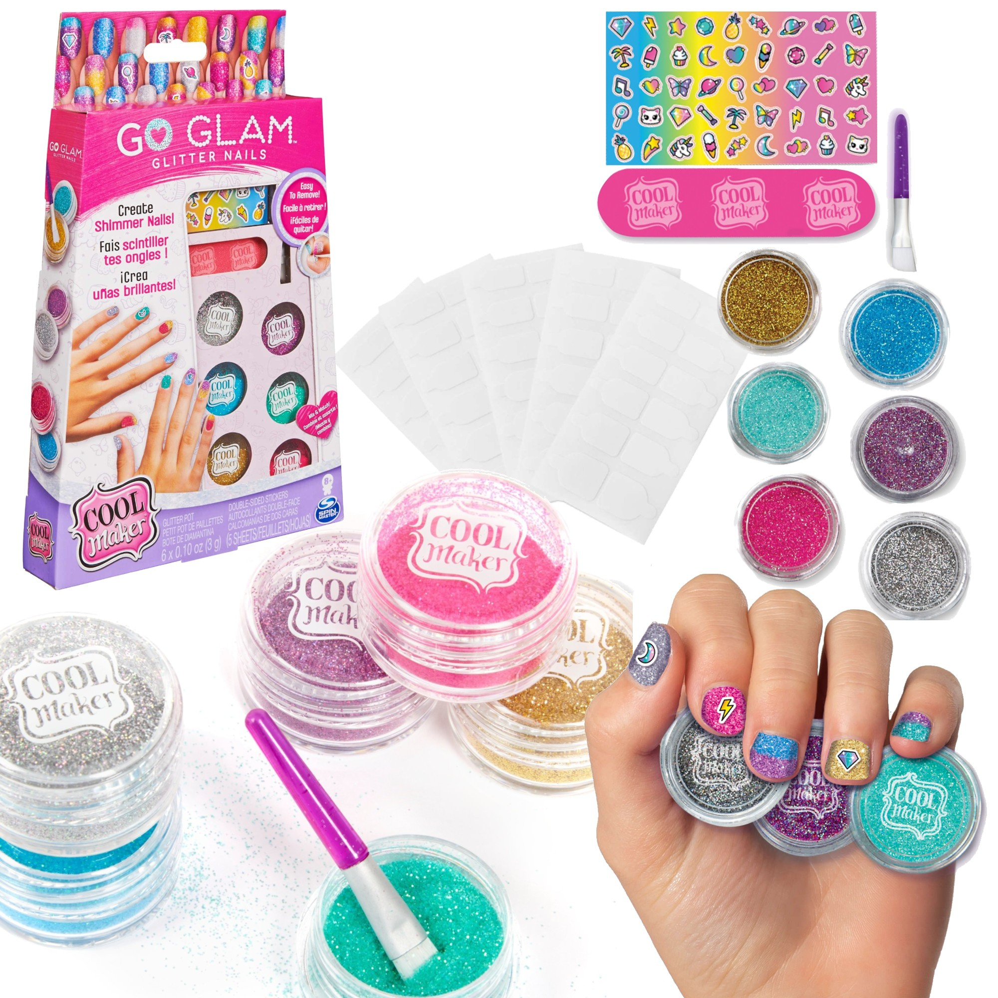 Zestaw Brokatowe paznokcie został stworzony przez cieszącą się nieustannie rosnącą popularnością firmę Spin Master. Zestaw ten pochodzi z serii zabawek Cool Maker Go Glam głównie skierowanej do dziewczynek.