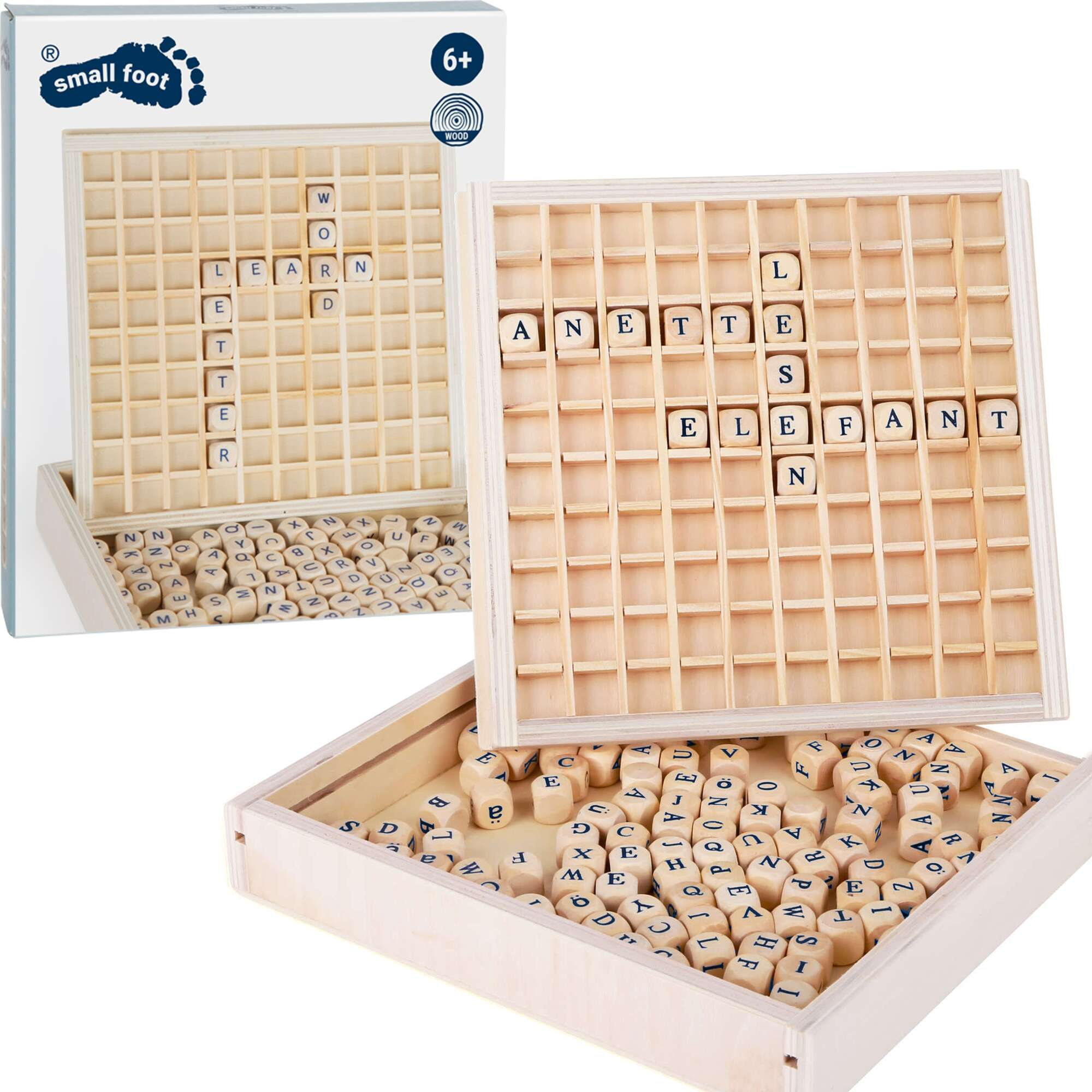 Zestaw zawiera 145 elementów, w tym skrzyneczkę z przegródkami, która pozwoli na układanie słów jak na planszy Scrabble.
