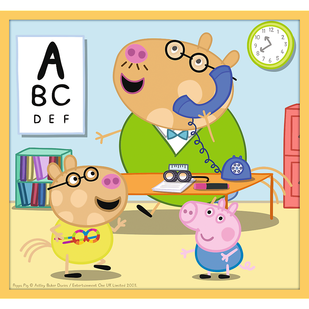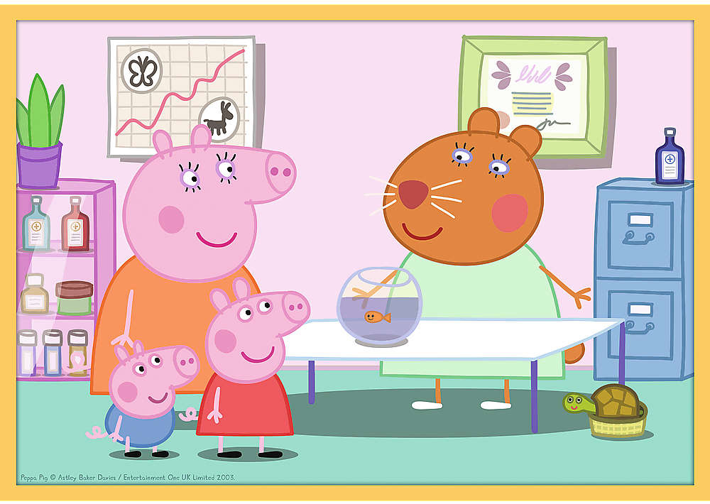 - Zestaw puzzli z bohaterami bajki o przygodach Świnki Peppy składa się z 10 osobnych obrazków z różną ilością elementów przedstawiających ulubione postacie z bajki.