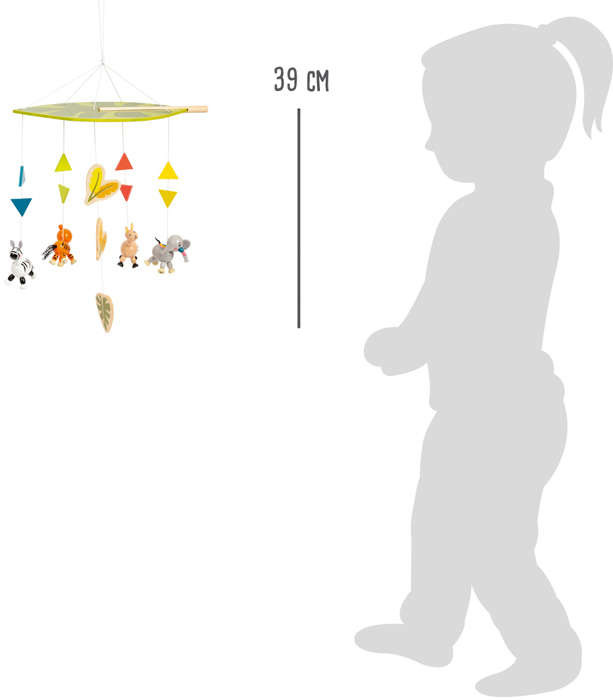 Drewniana karuzela jest przeznaczona dla najmłodszych, aby zająć ich uwagę i pomóc im zasnąć. Zabawkę montuje się nad łóżeczkiem dziecka. Po poruszeniu konstrukcji kolorowe zwierzątka i elementy przemieszczają się dookoła balonu. Zabawka została wykonana z wysokiej jakości drewna.
