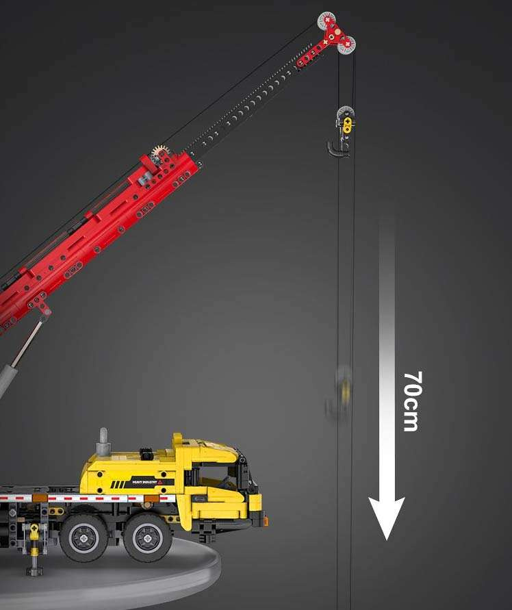 Zestaw składa się z 1831 elementów, pozwala na zbudowanie pełnej detali ciężarówki z dźwigiem. Pojazd stworzony został ze szczególną uwagą na detale, które zapewnią niesamowitą zabawę. Wyposażony został w 8 gumowych kół, które umożliwiają mu poruszanie się po różnych powierzchniach. Samochód ma żółtą karoserię z czarnymi elementami. Dźwig jest czerwony, potrafi obracać się, a hak opuszcza się i podnosi. Klocki są wytrzymałe, a wiele elementów zestawu jest ruchomych. Zestaw zapakowany został w eleganckie opakowanie, dzięki czemu zabawka świetnie sprawdzi się jako prezent.