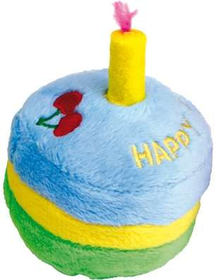 - Zabawka posiada na górze świecą z filcu oraz nadpis po angielsku "Happy Birthday". W środku znajduję się mały głośnik z popularną piosenką "Happy Birthday".