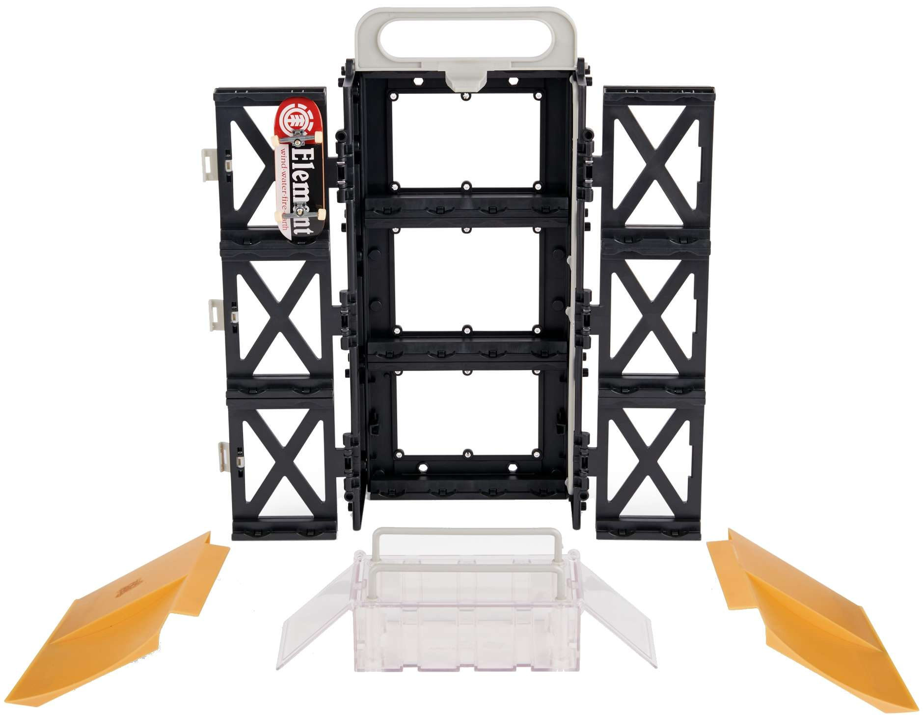 Zestaw składa się z futerału, który będzie idealnym miejscem do przechowywania kolekcji mini deskorolek. Może zmieścić w sobie 24 deski, dzięki czemu można zabrać ulubione deskorolki ze sobą w podróż. Posiada możliwość rozłożenia obudowy, aby przekształcić ją w rampę z funboxem i poręczami do robienia trików. Dołączona deskorolka z serii ELEMENT zapewni mnóstwo frajdy.