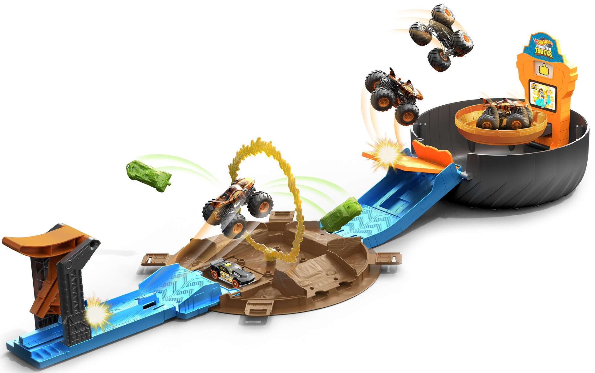 Dodatkowo w zestawie znajduje się również pojazd Hot Wheels i groźnego monster trucka.