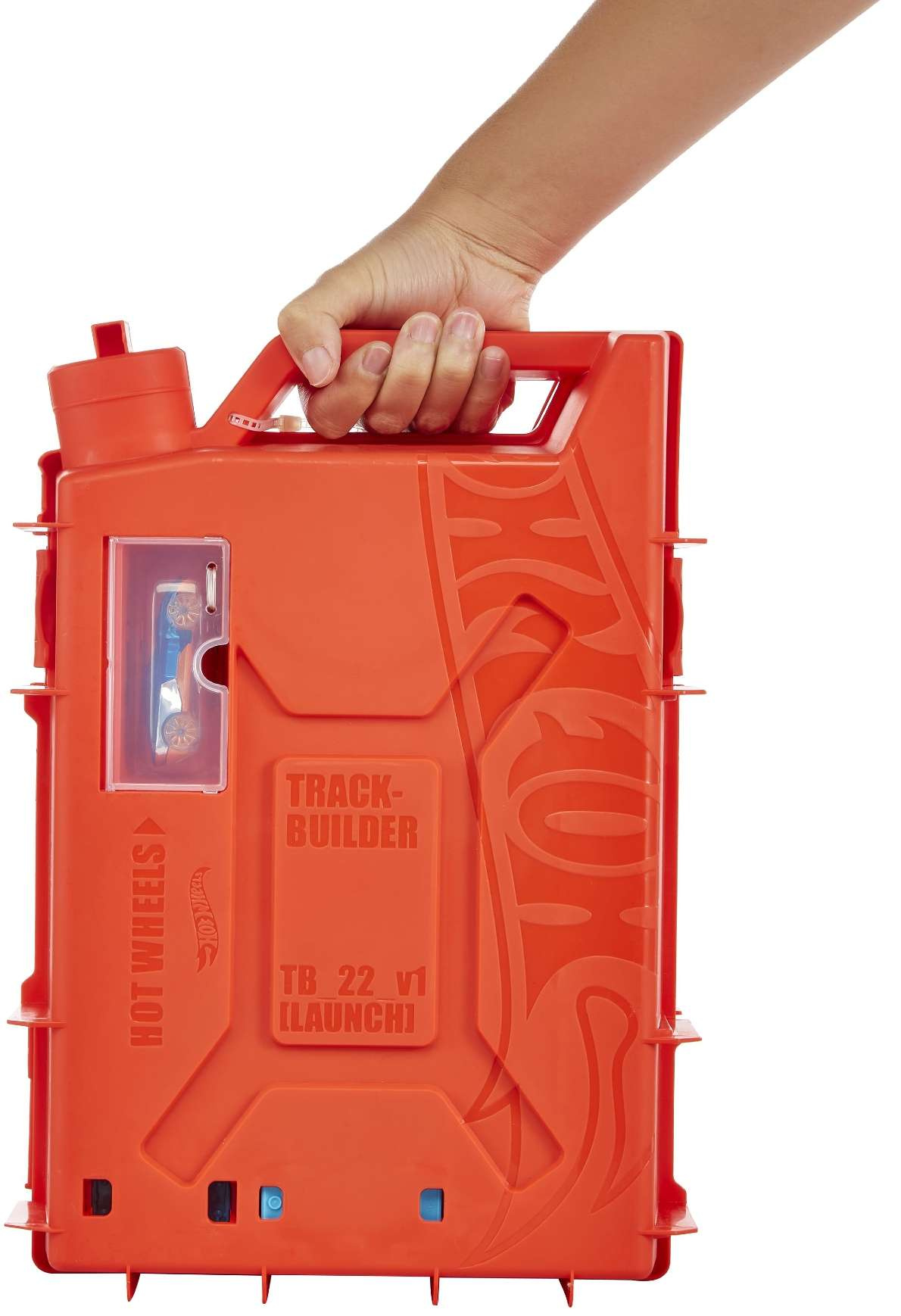 Zestaw zawiera Kanister Kaskaderskie Pudełko dla samochodów Hot Wheels oraz jeden samochodzik. Pudełko wykonane w kształcie kanistra i mieści elementy toru oraz akcesoria do zbudowania konstrukcji. Pudełko umożliwia wygodne przechowywanie, dzięki czemu można wszędzie go zabrać.