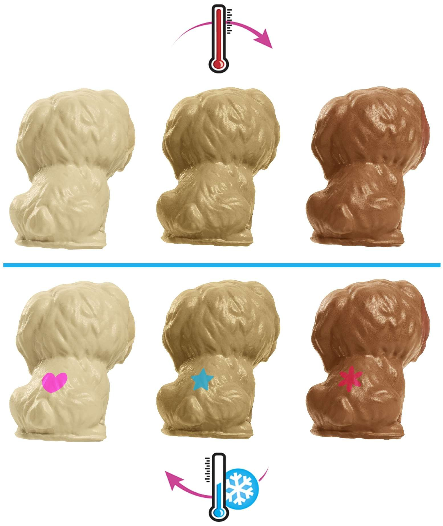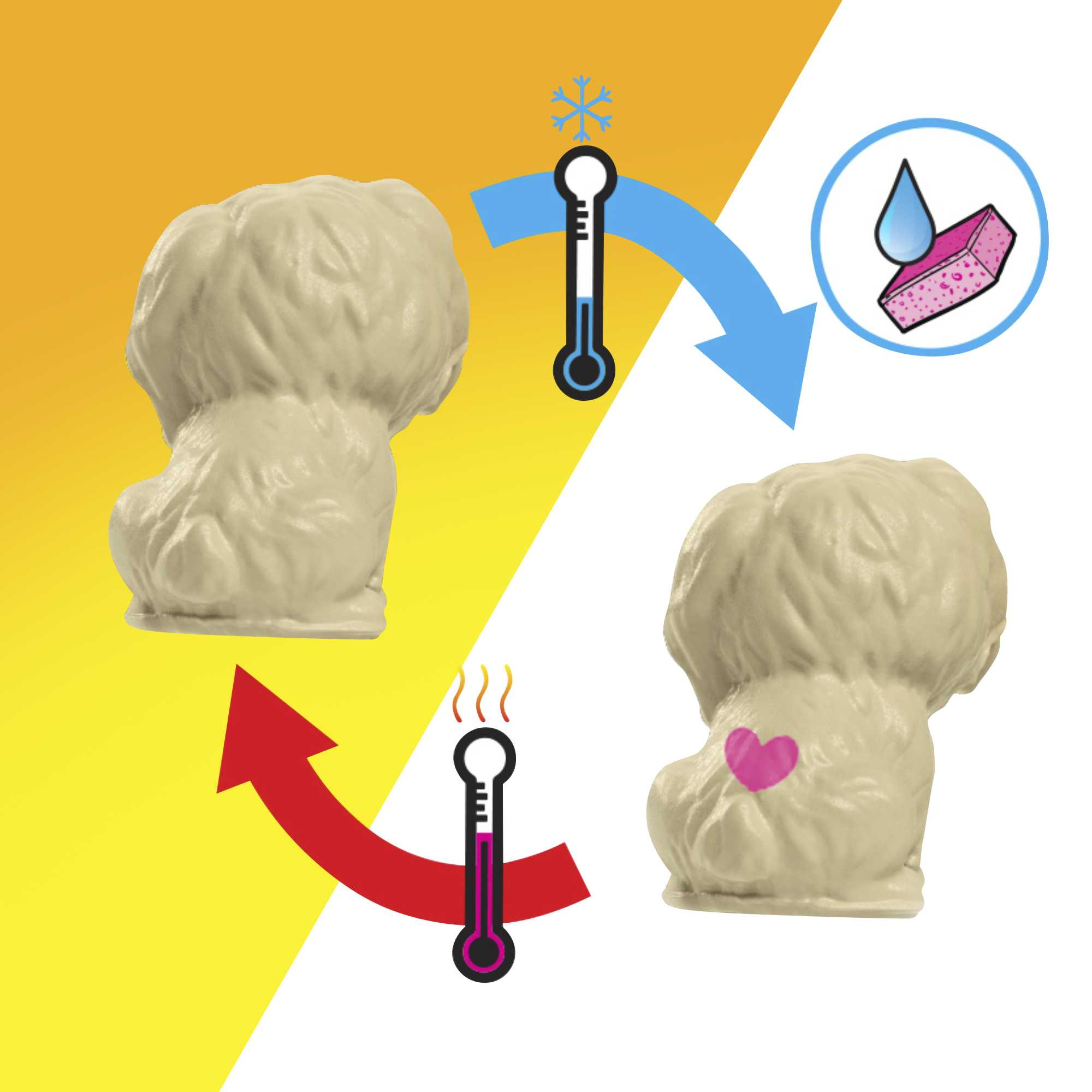- Z tym zestawem dziecko może pomoc lalkę przy narodzinach piesków. Każdy szczeniak ma detal, który można odsłonić po zanurzeniu w wodzie. Do zestawu dołączone są lalka oraz akcesoria do zabawy.