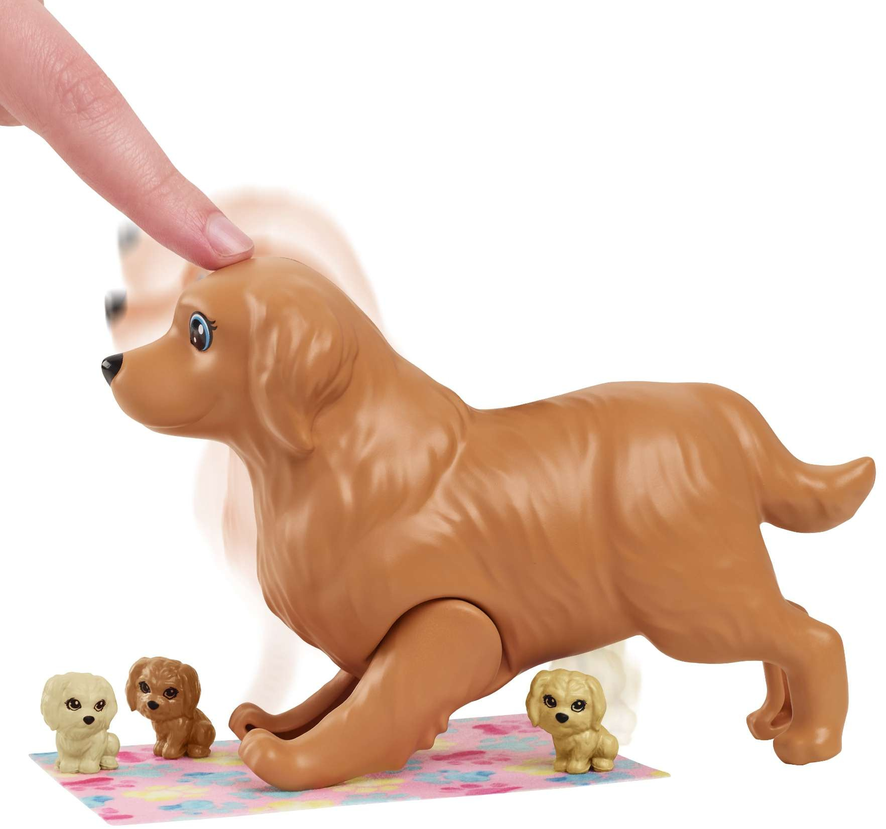 Dzięki temu zestawowi każda dziewczynka ma możliwość pomóc lalkę Barbie przy narodzinach szczeniaczków – wystarczy nacisnąć plecy psiej mamy, aby szczeniaczki się pojawili z jej brzuszka. Każdy szczeniak ma wyjątkowy detal, aby go odsłonić trzeba napełnić wanienkę zimną wodą, a potem zanurzyć w niej ręczniczek i przetrzeć nim pieski.