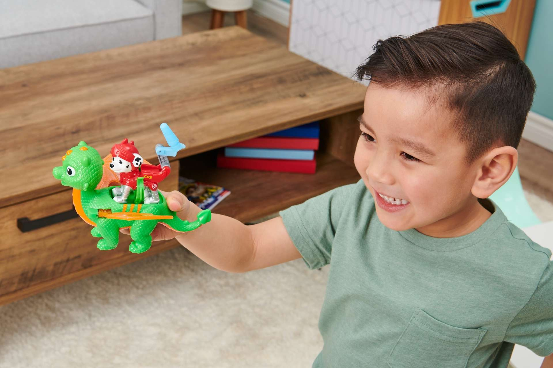 - Smok Jade jest zielono-pomarańczowy. Na jego plecach można posadzić walecznego Marshalla i odlecieć!