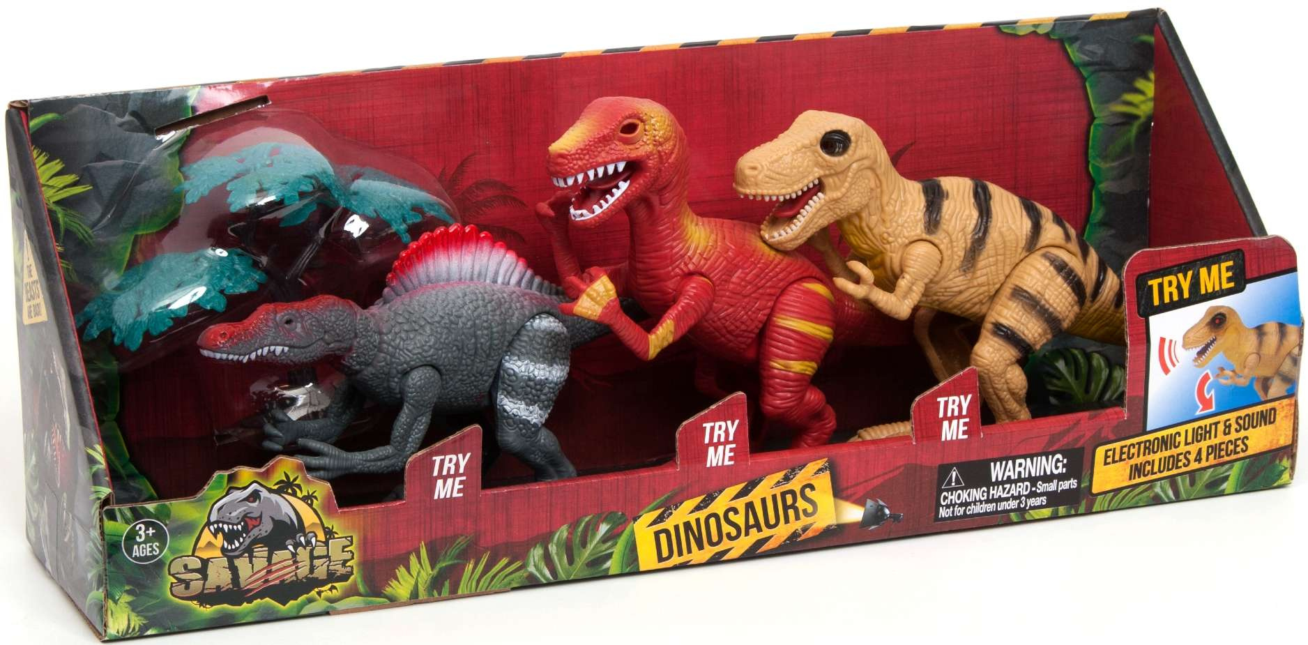 Odkryj fascynujący świat prehistorii dzięki temu zestawowi figurek dinozaurów z efektami świetlnymi i dźwiękowymi.