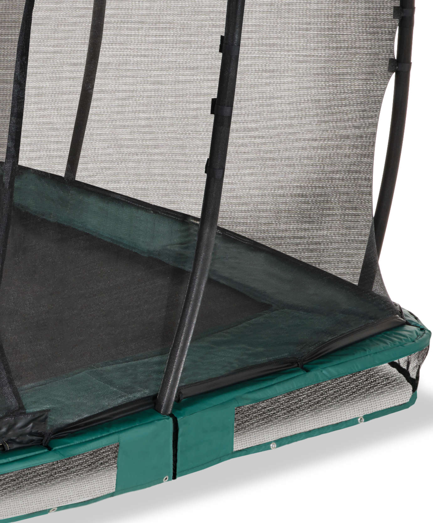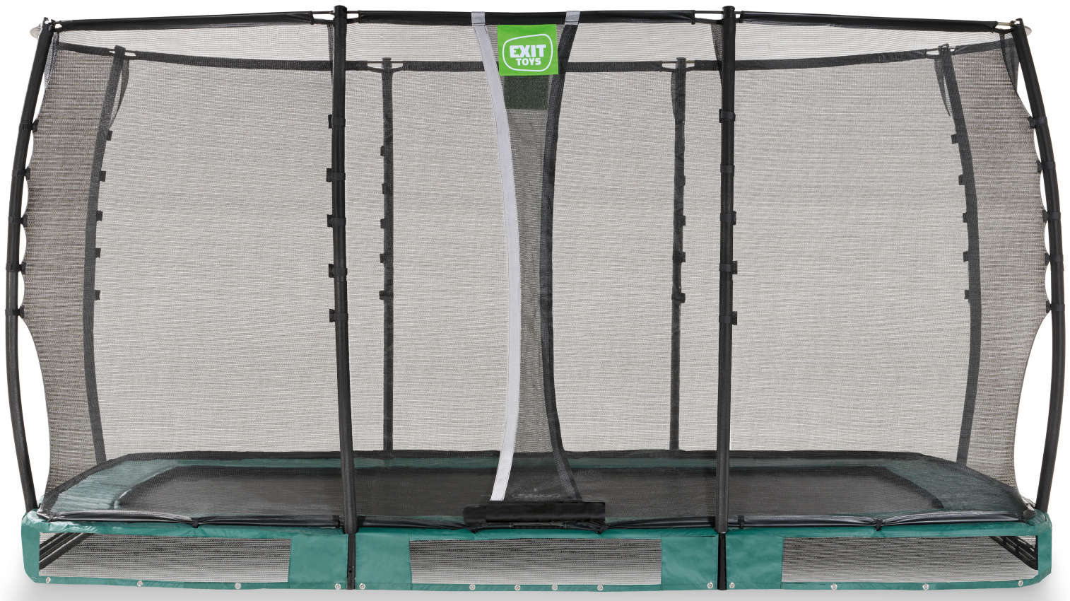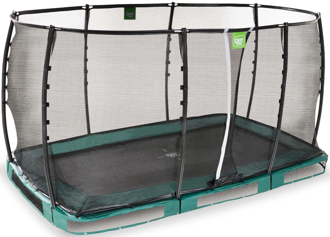 - Trampolina EXIT Allure Premium 214x366cm to prostokątna trampolina do gruntu z zieloną obwódką i siatką bezpieczeństwa premium. Dzięki ocynkowanej i malowanej proszkowo ramie oraz podwójnie stożkowych sprężynach, ta trampolina ma urok.