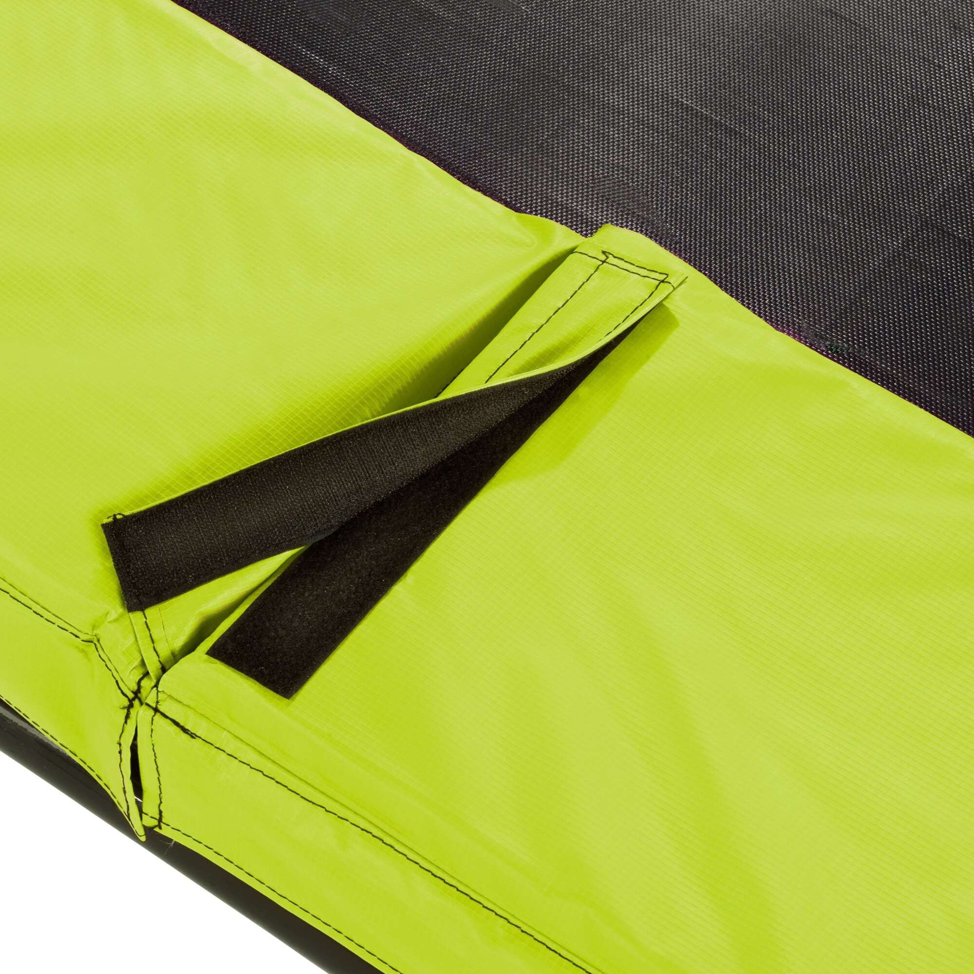 Dodatkowo trampolina jest wyposażona w siatkę zabezpieczającą. Siatka zabezpieczająca ma zapinane na zamek wejście, które zamyka się szybko i łatwo. Fluorescencyjny, wyraźnie widoczny zamek sprawia, że otwarte nie może pozostać niezauważone.