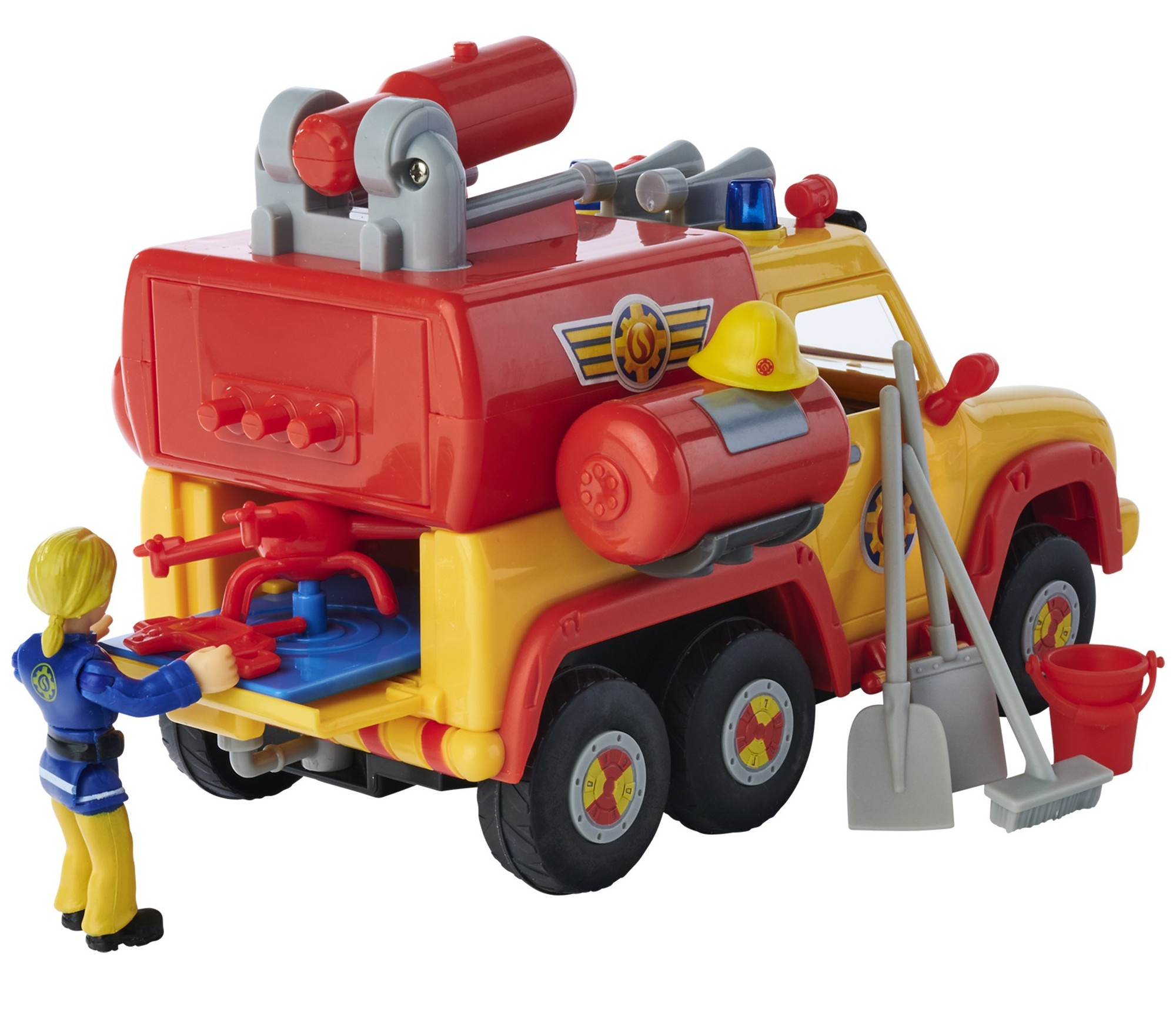 Wóz strażacki Venus stworzono w charakterystycznych dla Strażaka Sama barwach, czyli w kolorze czerwono-żółtym. Pojazd wyposażony jest w sześć gumowych kół, dzięki którym porusza się on nie tylko z łatwością, ale także stabilnie po wszelkich powierzchniach płaskich. Wóz posiada otwierane boczne drzwi, otwieraną przyczepę, w której można schować wszelakie akcesoria pomagające w akcjach ratowniczych.
