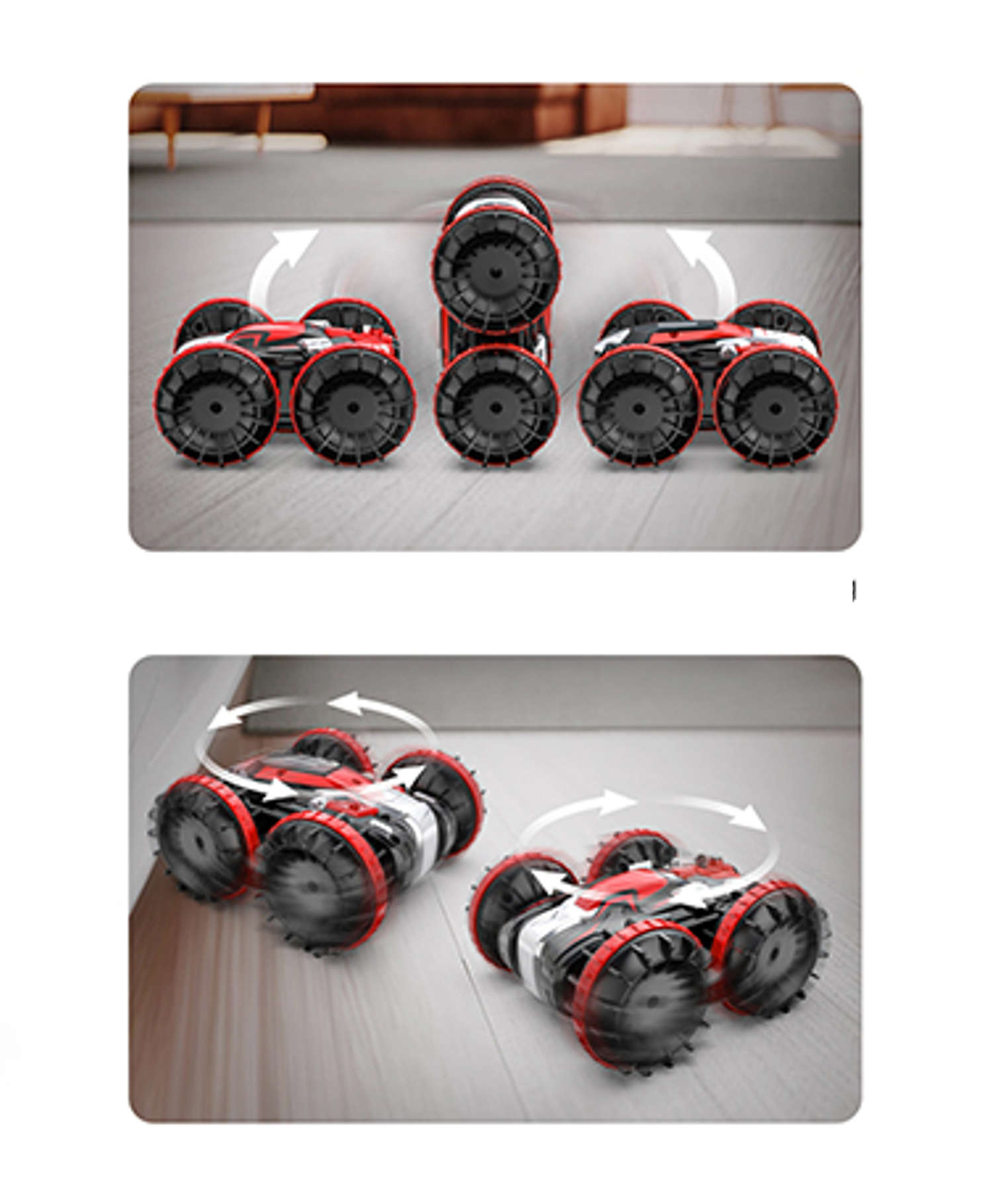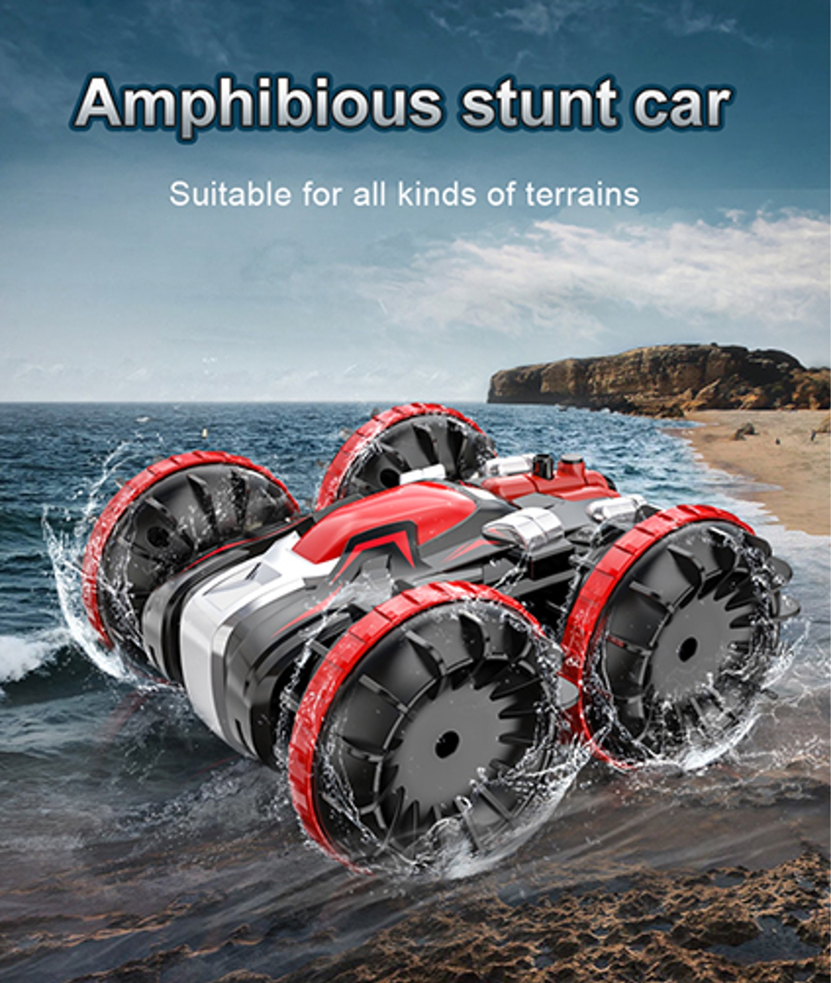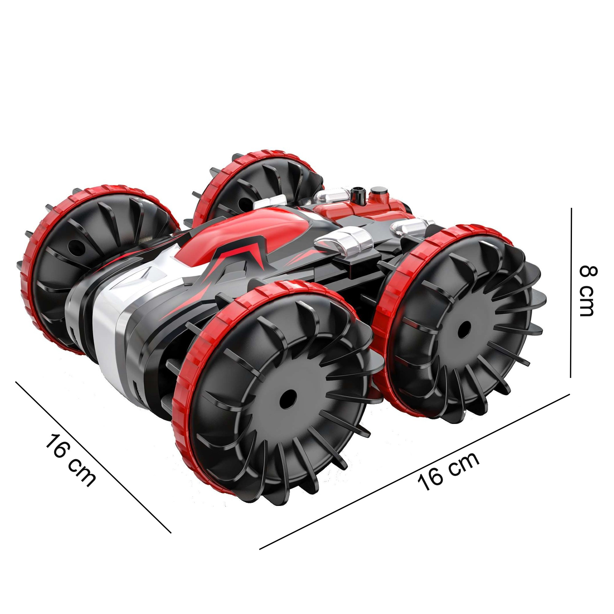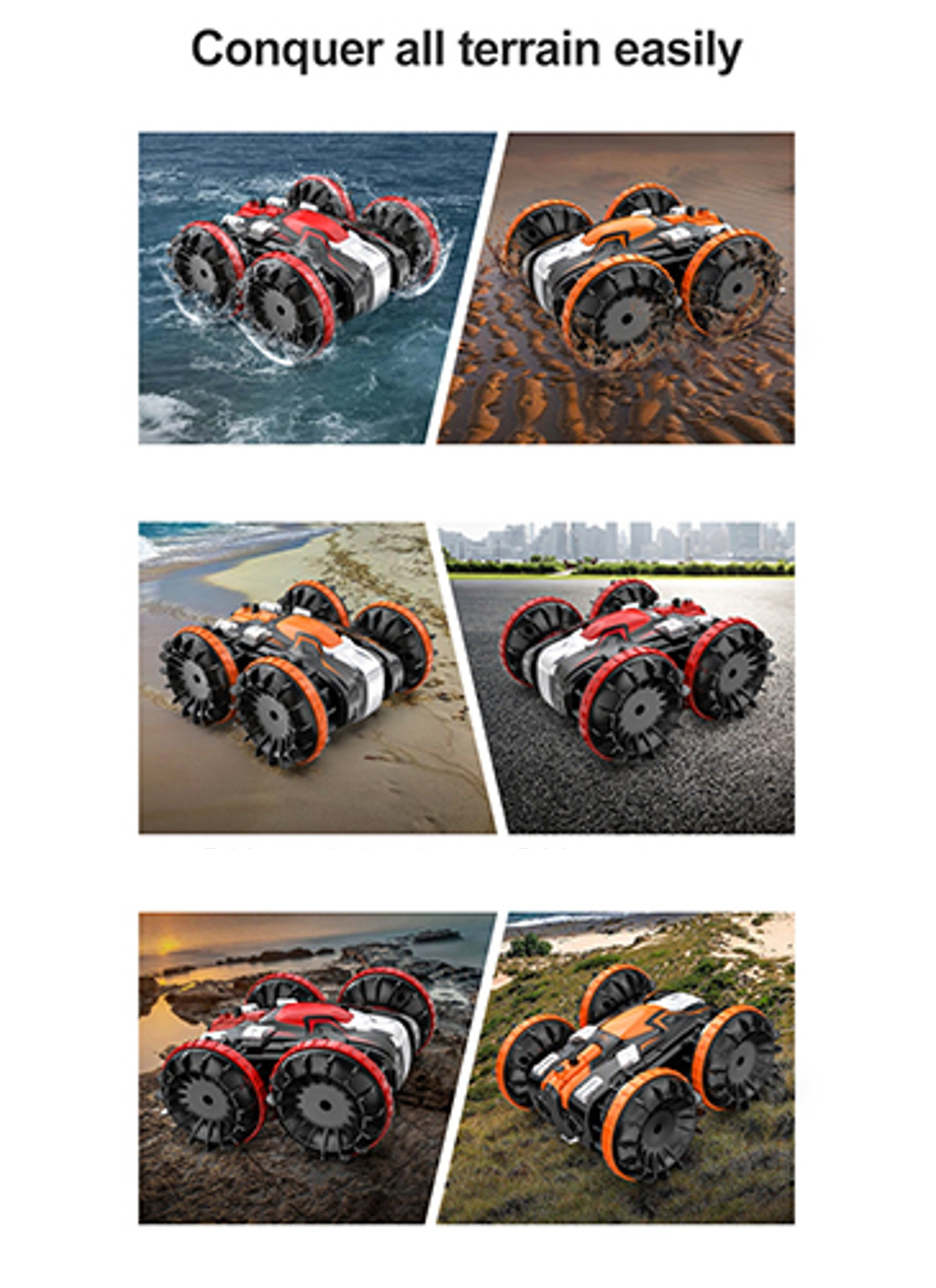 Pojazd amfibia jest wykonany w czerwonym kolorze z plastiku ABS o wysokiej jakości. Ten samochód ma cztery duże koła, więc poradzi sobie z każdą przeszkodą, a całkowicie wodoodporna konstrukcja pozwala jeździć zarówno po lądzie, jak i po wodzie.