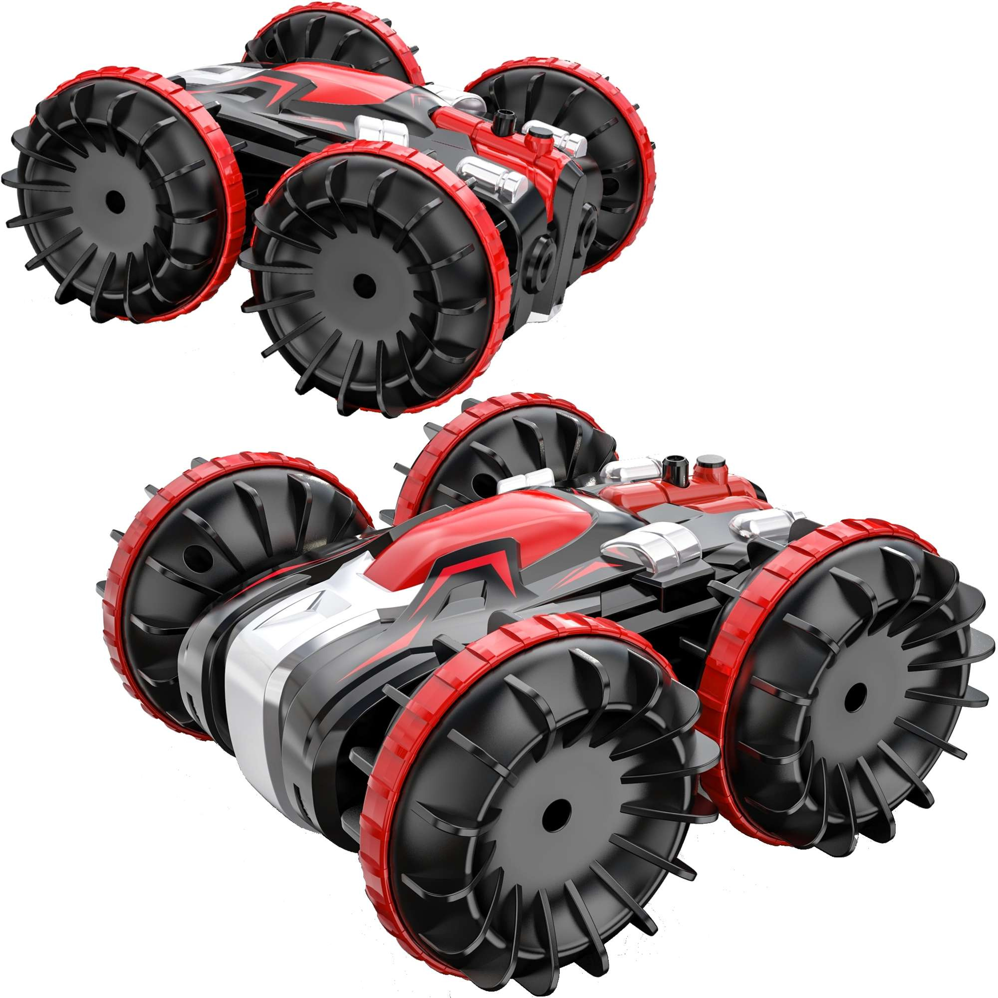 - Pojazd amfibia jest wykonany w czerwonym kolorze z plastiku ABS o wysokiej jakości. Ten samochód ma cztery duże koła, więc poradzi sobie z każdą przeszkodą, a całkowicie wodoodporna konstrukcja pozwala jeździć zarówno po lądzie, jak i po wodzie.