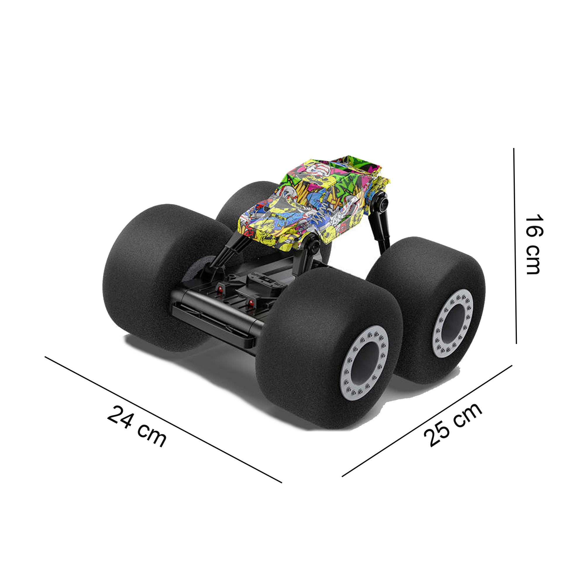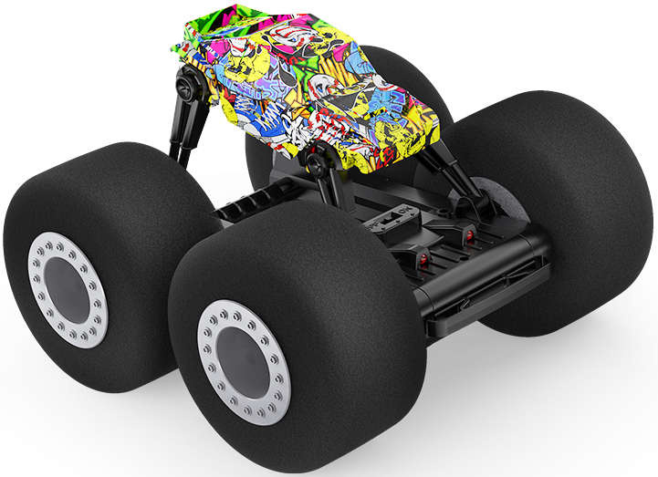 - Dzięki dużym, piankowym oponom pojazd nie ma problemu z przeszkodami i ciężkimi akrobacjami!