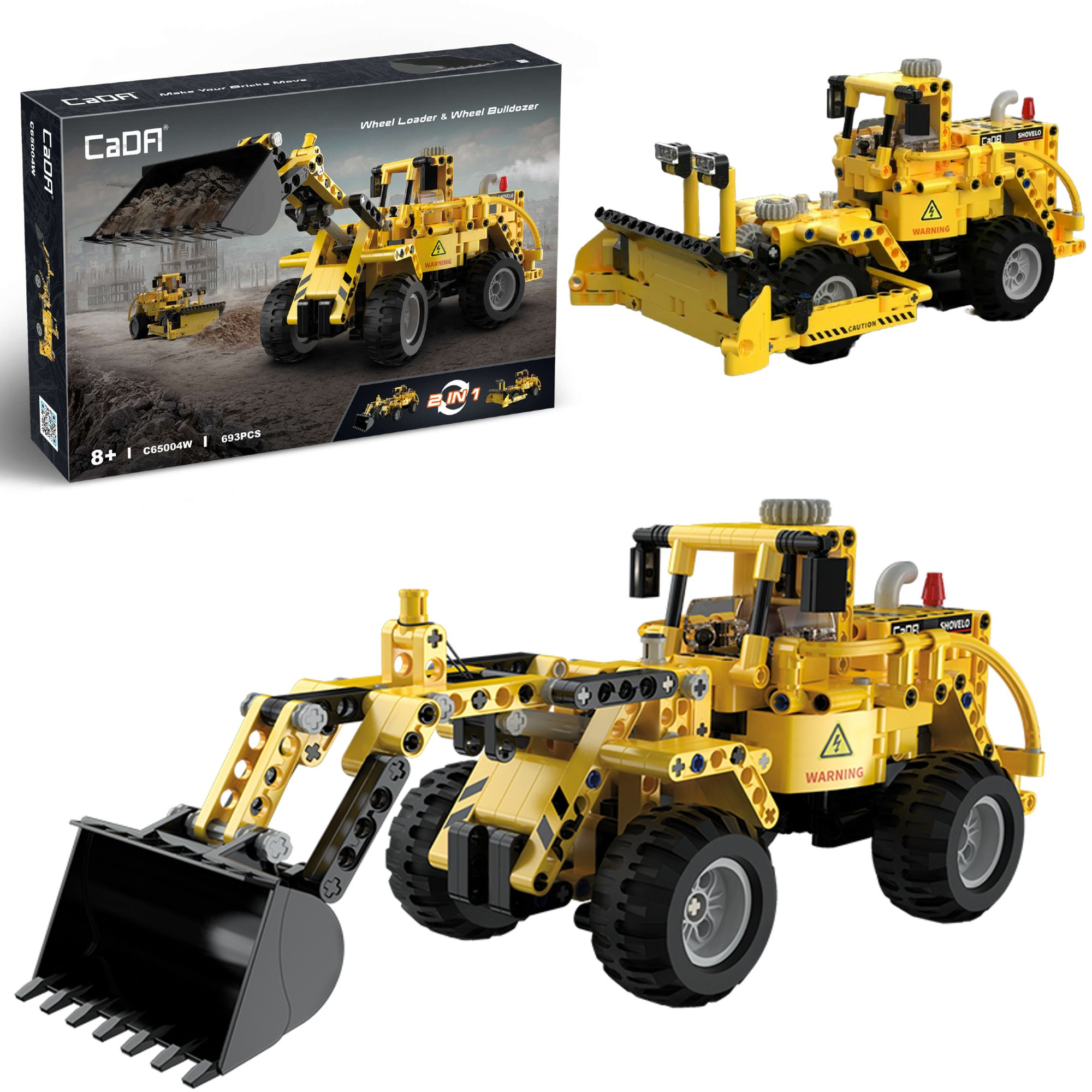 Klocki konstrukcyjne CaDA Zestaw żółte pojazdy budowlane 2w1 Ładowarka i Buldożer Spychacz 693 elementy