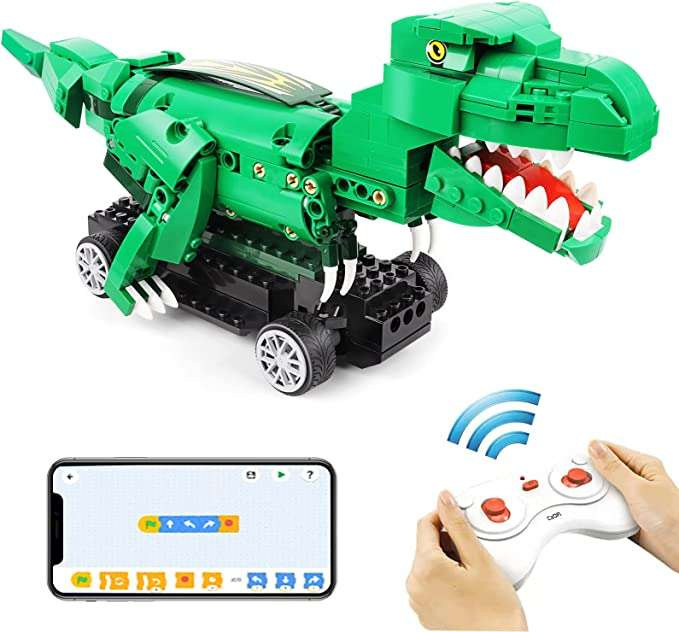 Zestaw składa się z 343 elementów i umożliwia samodzielne złożenie zdalnie sterowanej figurki dinozaura T-Rexa. Pojazd stworzony został ze szczególną uwagą na detale, które zapewnią niesamowitą zabawę. Figurka jest w zielonym kolorze z czarnymi elementami. Wyposażona została w 4 koła, które umożliwiają mu poruszanie się po różnych powierzchniach. Może poruszać łapami, paszczą i ogonem, dzięki czemu zabawa nigdy się nie znudzi. Zestaw zapakowany został w eleganckie opakowanie, dzięki czemu zabawka świetnie sprawdzi się jako prezent.