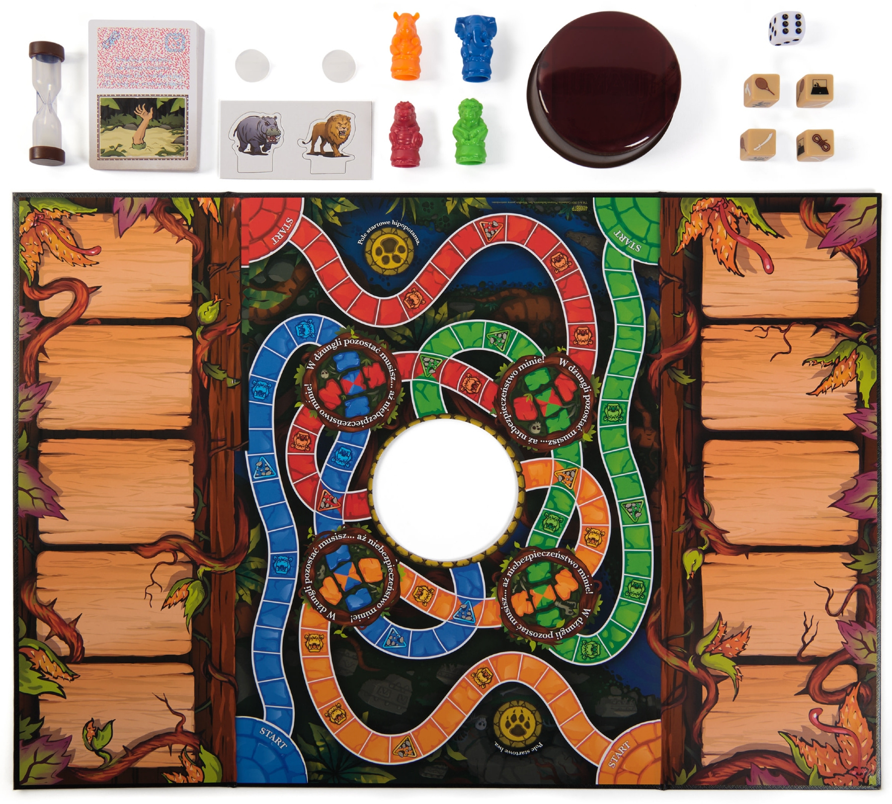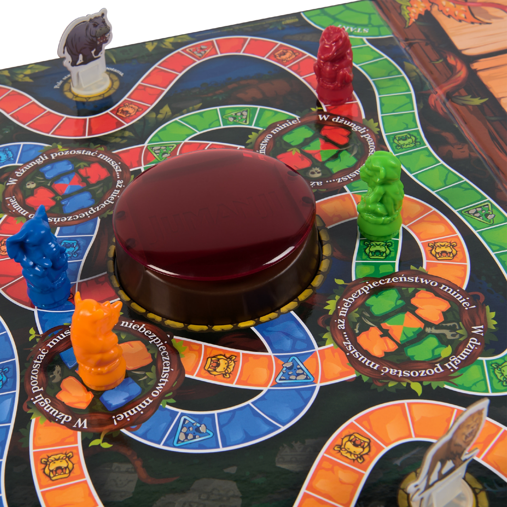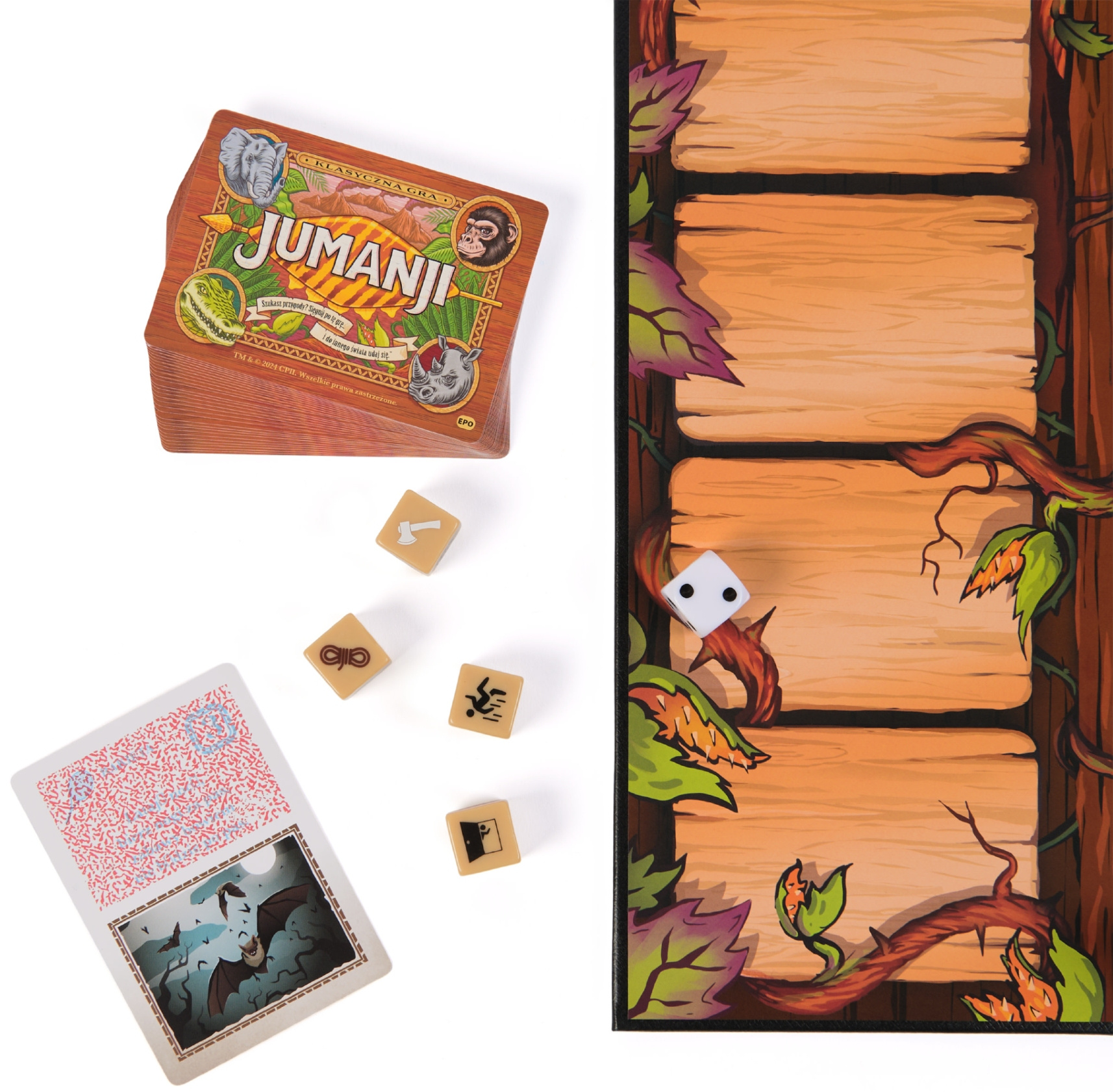 W trakcie gry będziesz stawiał czoła przeróżnym niebezpieczeństwom (np. atak trąbiących słoni, ugryzienie dzikiego lwa), będziesz rozszyfrowywać tajne wiadomości i przede wszystkim będziesz ścigał się z czasem. A gdy już podołasz wszystkim wyzwaniom i staniesz w centrum planszy, wówczas zakrzyknij "Jumanji" i zostań zwycięzcą!