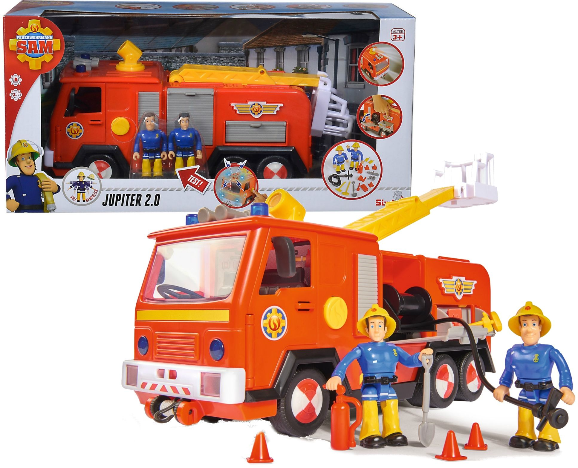Jupiter 2.0 to nowa wersja niezwykle popularnej zabawki marki Simba. Zestaw składa się z wozu strażackiego, dwóch figurek oraz akcesoriów dla figurek. Wóz strażacki Jupiter 2.0. został wyposażony w: