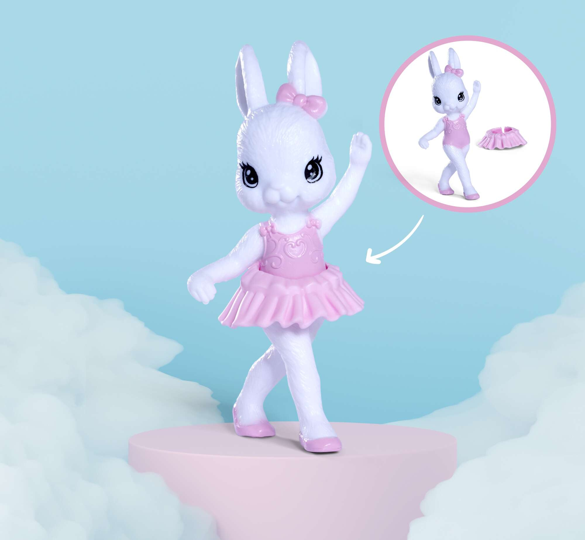 Steffi opiekuje się uroczym króliczkiem, który też jest ubrany w strój baleriny.