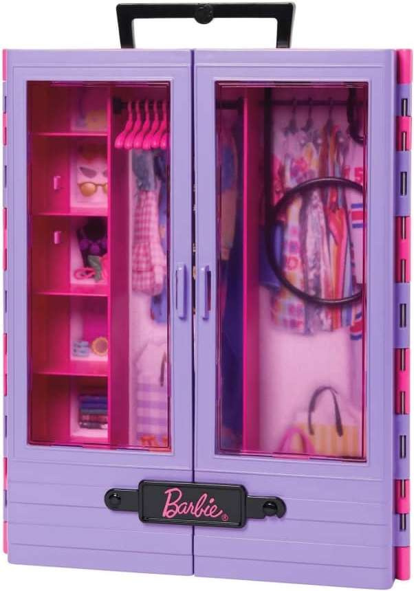 Fioletowo-różowa szafa na ubranka została zaprojektowana w charakterystycznym stylu Barbie. Garderoba posiada podwójne półprzezroczyste drzwi, które pozwalają zerknąć do środka. Wewnątrz znajdują się półeczki, na których można ułożyć buciki i akcesoria.