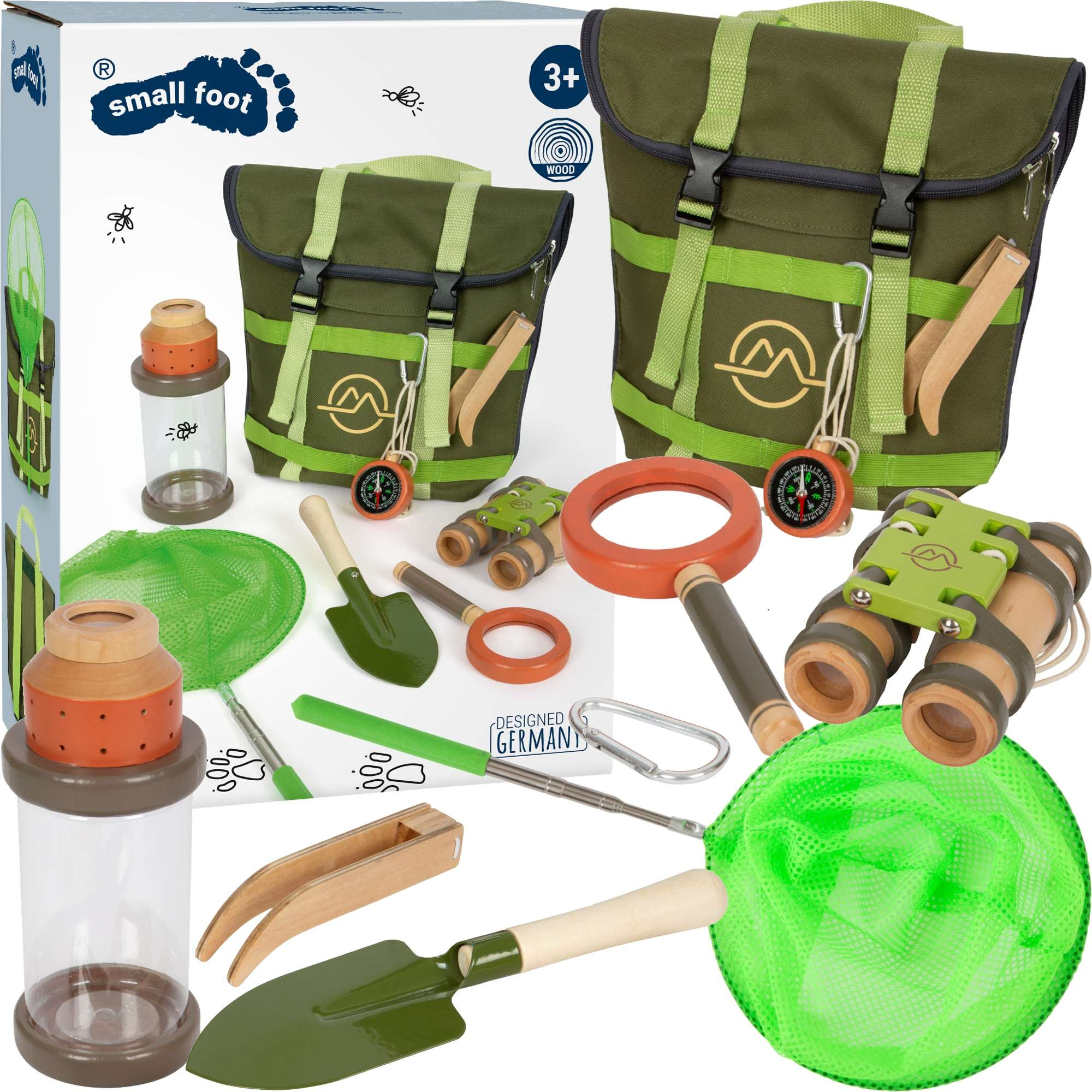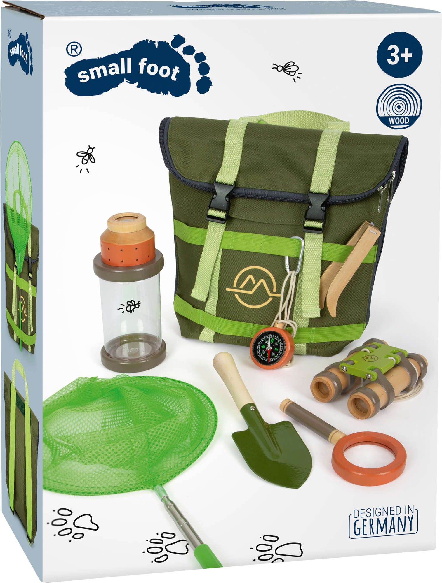 - w zestawie: plecak, pojemnik na owady, drewniana lornetka, pęset, kompas, teleskopowa siatka na motyle i owady, lupa, łopatka, karabińczyk
