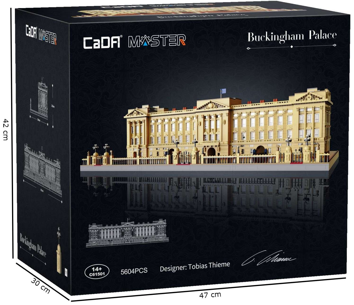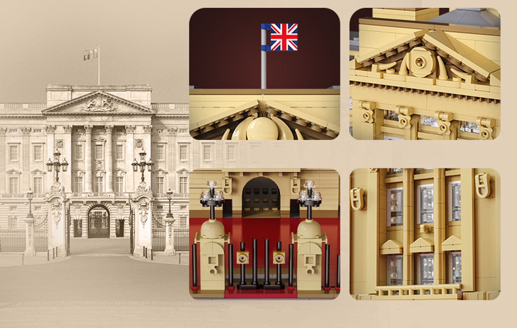 Zestaw składa się z 5604 elementów i umożliwia samodzielne złożenie Pałacu Buckingham. Został wykonany z dokładnością o szczegóły i do złudzenia przypomina prawdziwy budynek. Dzięki swoim rozmiarom będzie niesamowitym wyzwaniem oraz ozdobą w pokoju.