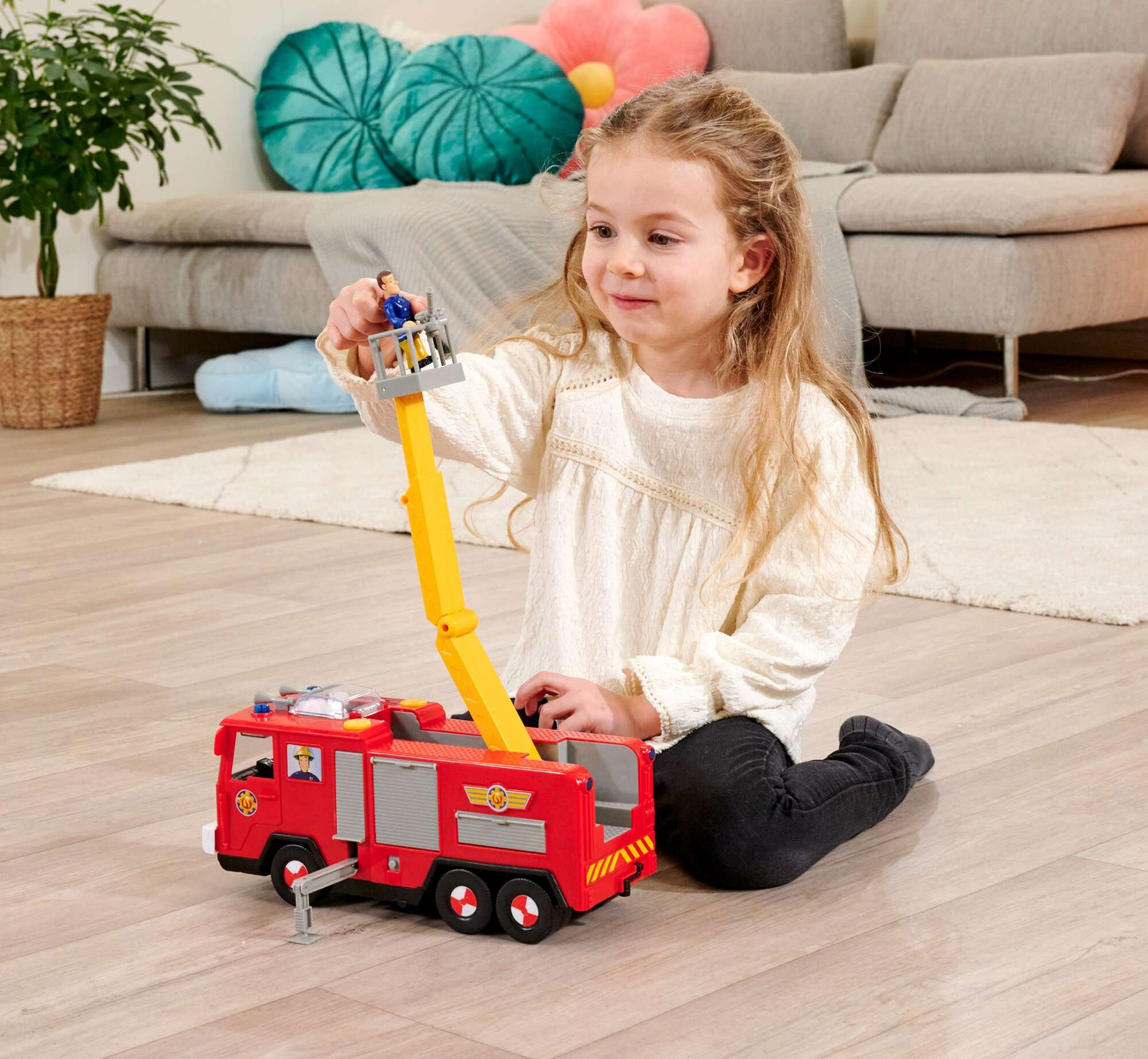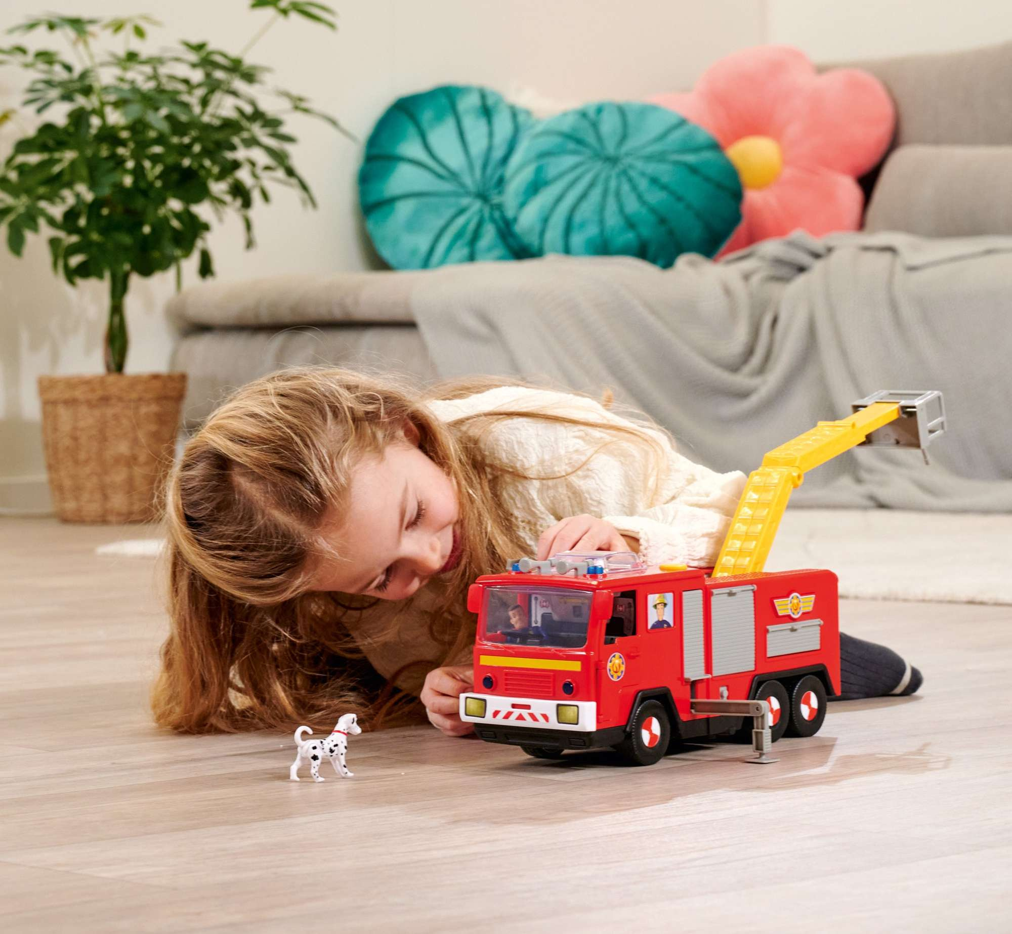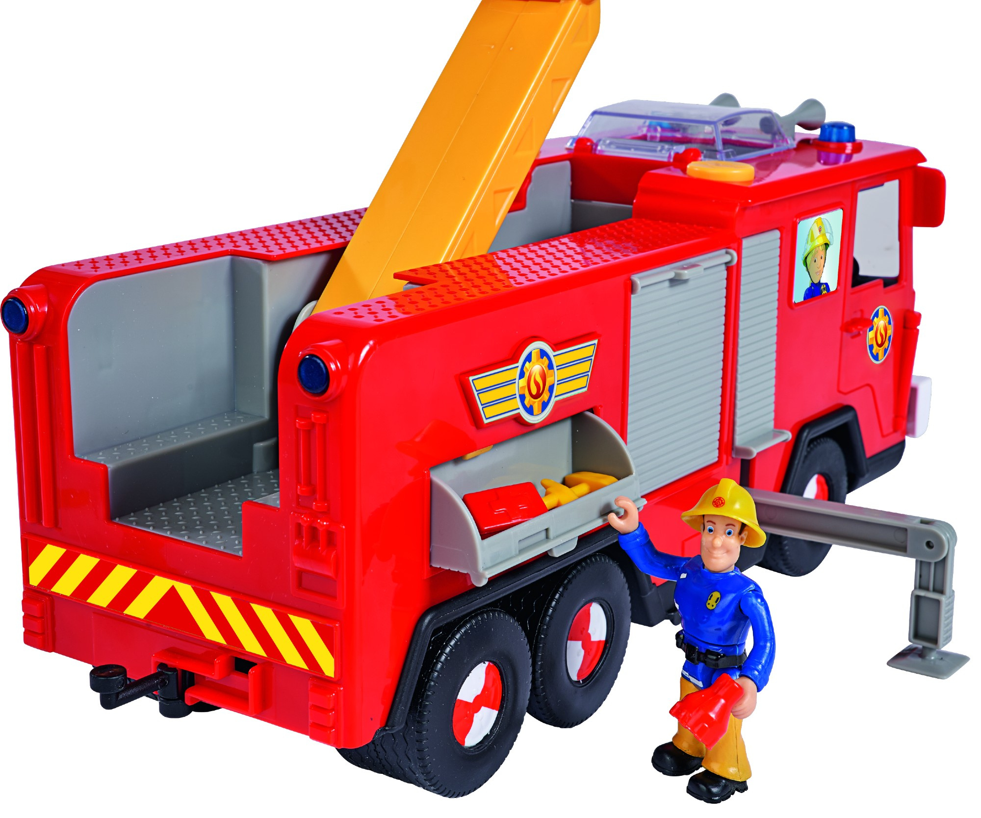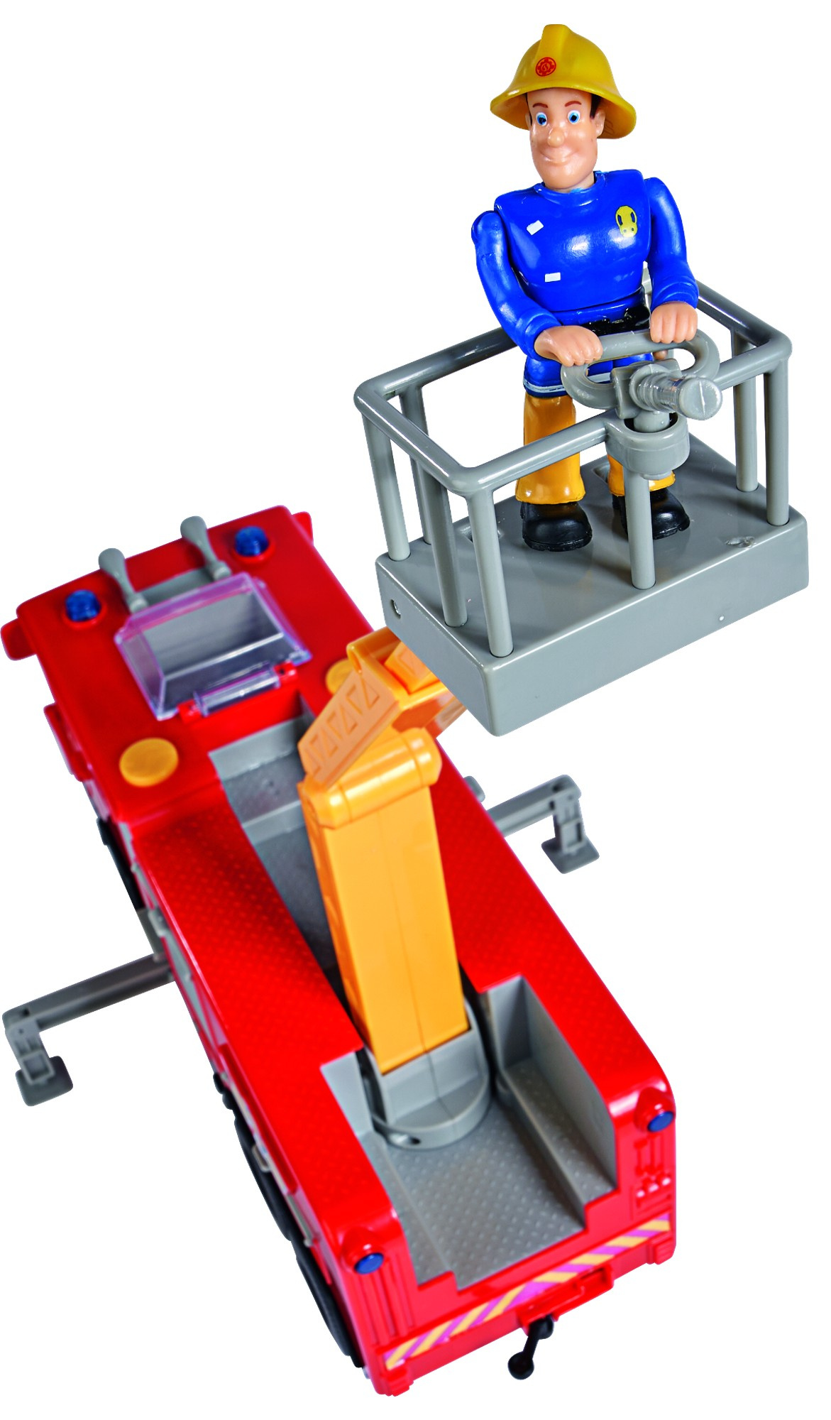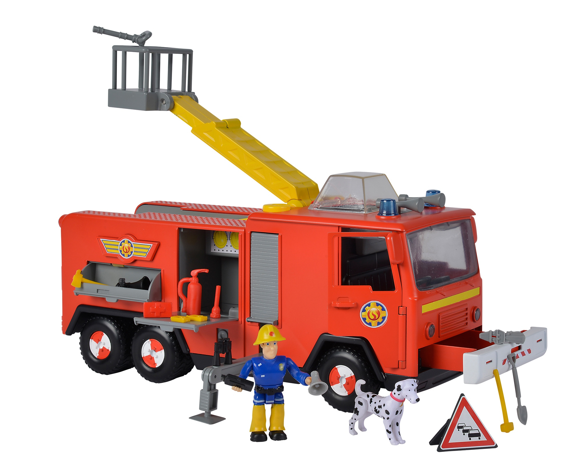 - Wóz strażacki Jupiter został stworzony z materiałów wysokiej jakości w charakterystycznych dla Strażaka Sama barwach. W zestawie również znajdują się figurki Strażaka Sama, który jest w pełni ruchomy, i psa Radara.
