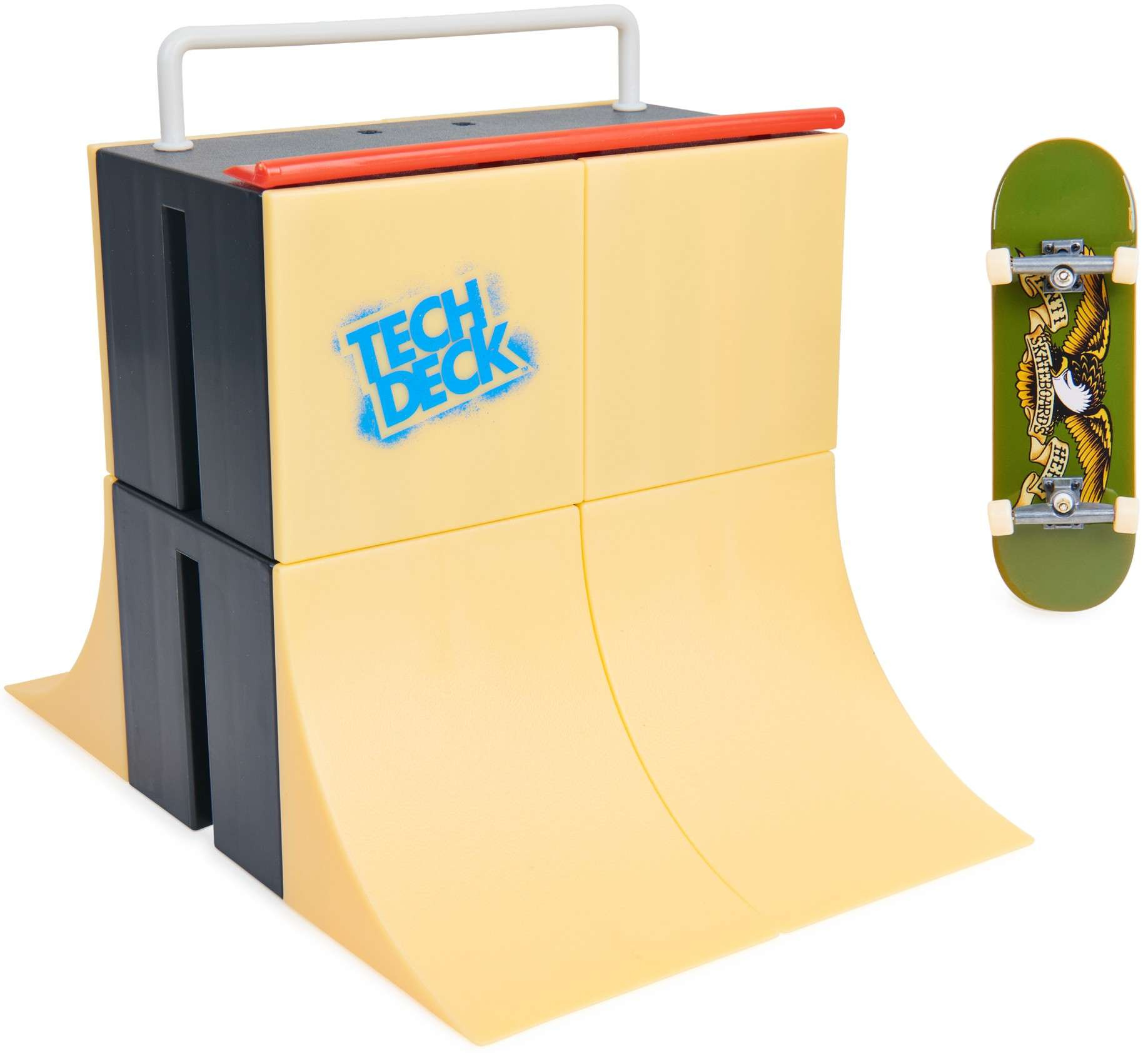 Został stworzony przez cenioną za wysoką jakość produktów markę Spin Master. Zestaw pozwoli na ćwiczenie niemal nieograniczonej liczby trików na deskorolce, którą umieszcza się w dłoni. Kultowa seria Tech Deck jest już na rynku od ponad 20 lat i nadal pozyskuje kolejne rzesze fanów.