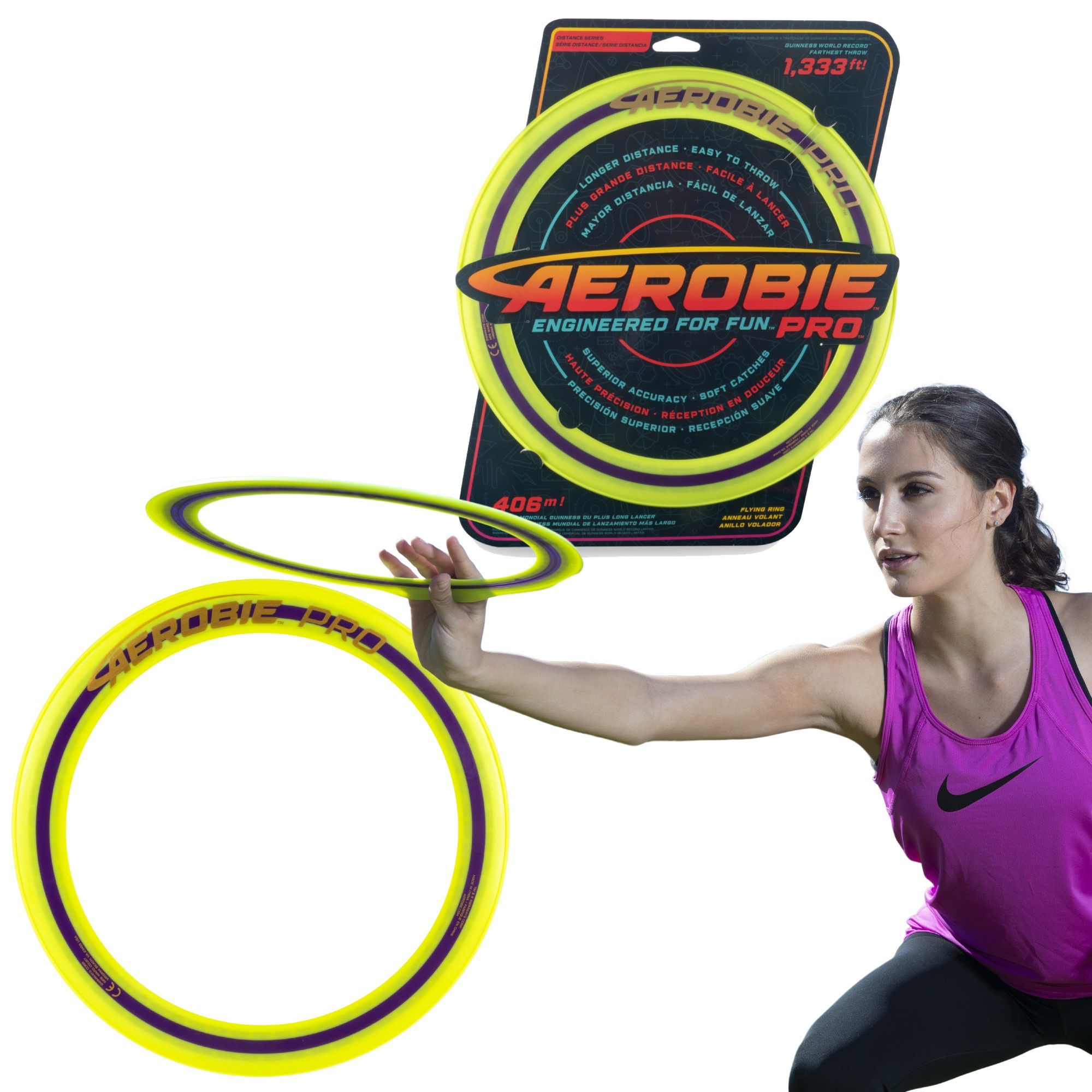 Aerobie Pro, to wspaniały sposób na zabawę na świeżym powietrzu! Gumowo-plastikowa obręcz umożliwia dalekosiężne rzuty. Nie posiada ostrych krawędzi, dzięki czemu, jest znacznie bezpieczniejsza. Obręczą o średnicy ok. 33 cm można rzucić nawet na odległość 406 m!