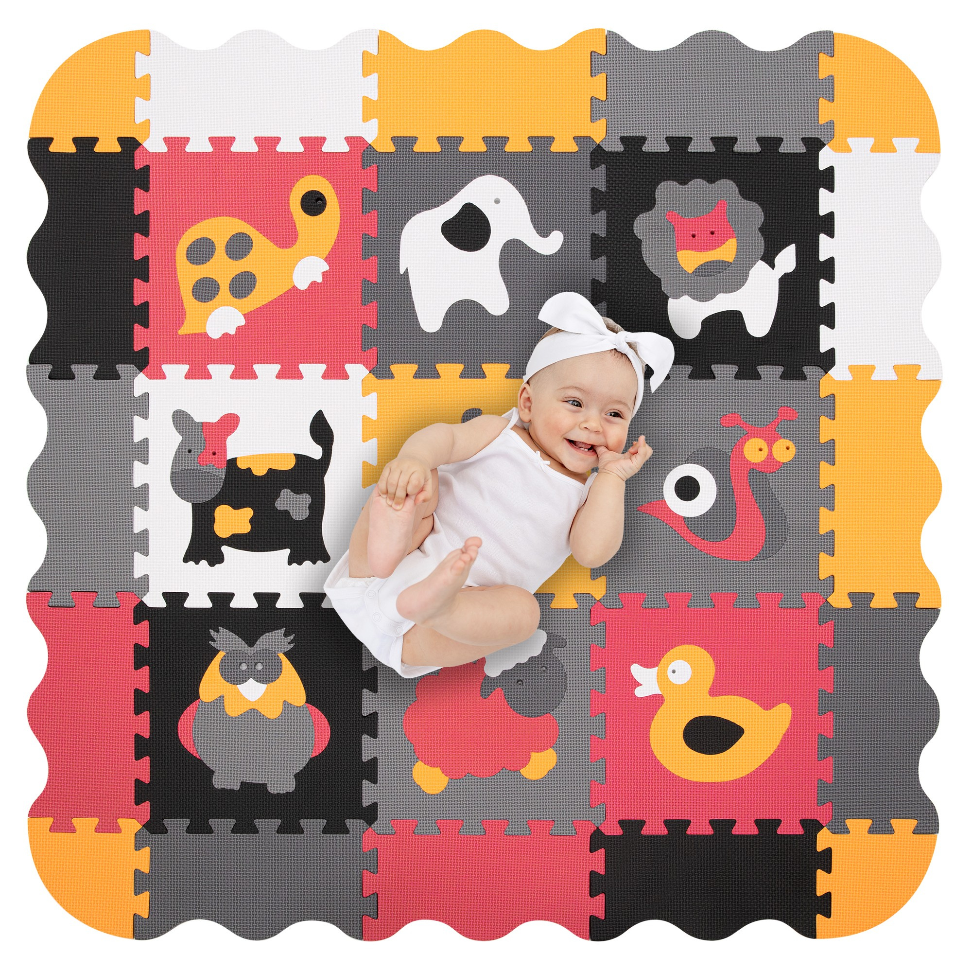 Mata piankowa to nie tylko bezpieczne miejsce do zabawy dla najmłodszych, ale także wspieranie ich rozwoju. Dziecko bez obaw może ćwiczyć przewracanie się na boki, raczkowanie czy pierwsze kroki. Gdy maluch podrośnie puzzle piankowe mogą służyć jako zabawka. Elementy można łączyć ze sobą na płasko, ale też przestrzennie tworząc np. sześcian. Taki zestaw pobudza dziecięcą wyobraźnię. Każdy z puzzli posiada wyjmowany element, który można wykorzystać do nauki rozpoznawania zwierząt.