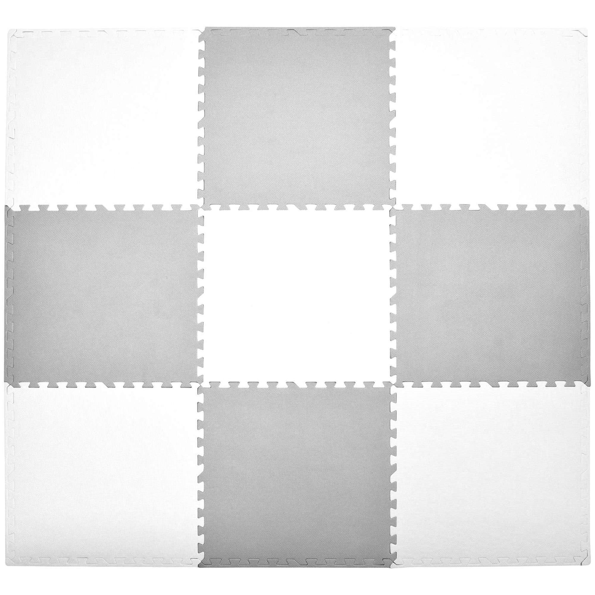 Humbi Duża Mata edukacyjna Grube Puzzle piankowe 180 x 180 x 1 cm XXL 9 sztuk 62 x 62 x 1 cm Kolor biały i szary biało-szary