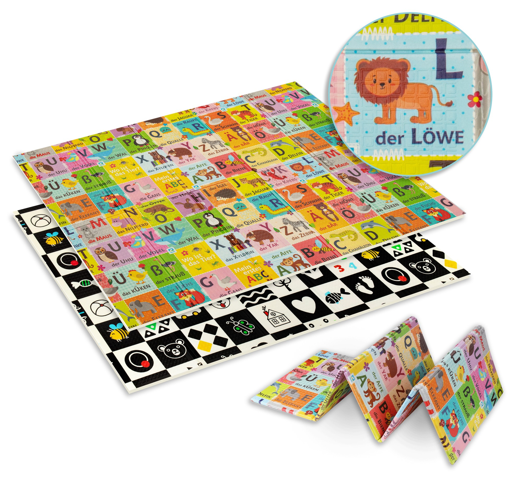 Humbi Gruba Mata Edukacyjna 2W1 z pianki XPE 120x180 alfabet wersja niemiecka