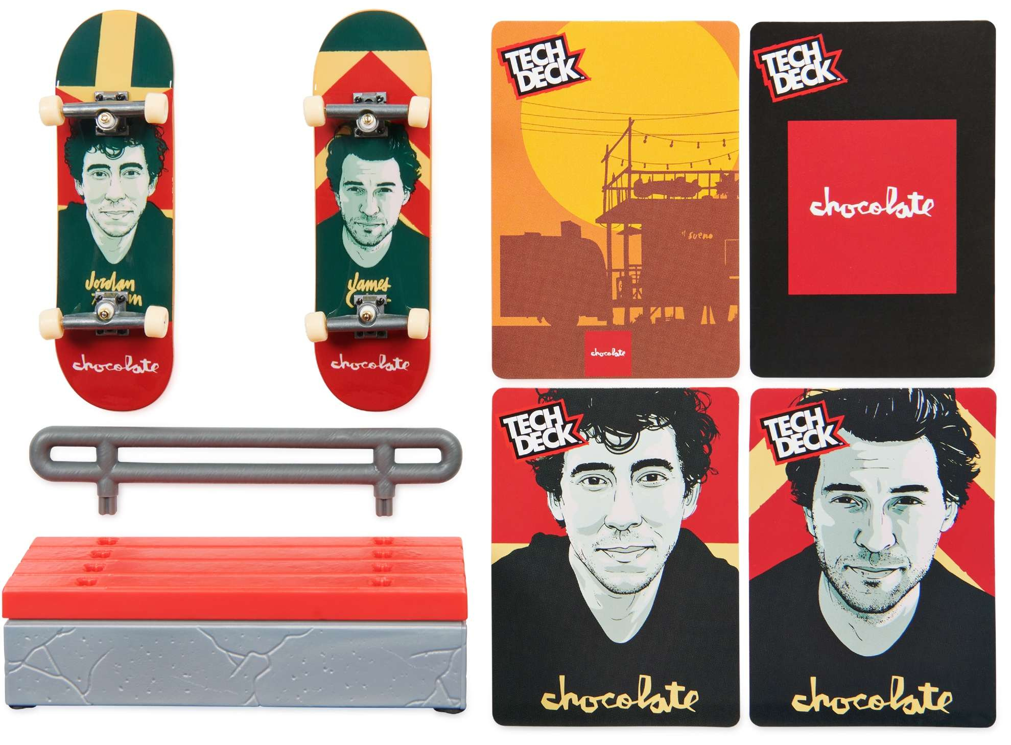 - zestaw zawiera: 2 deskorolki Tech Deck Chocolate, mini przeszkoda, 4 karty