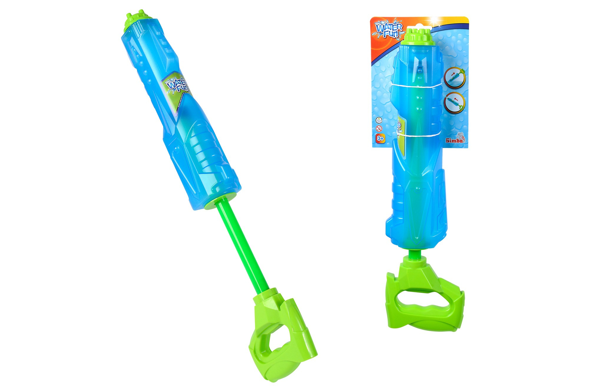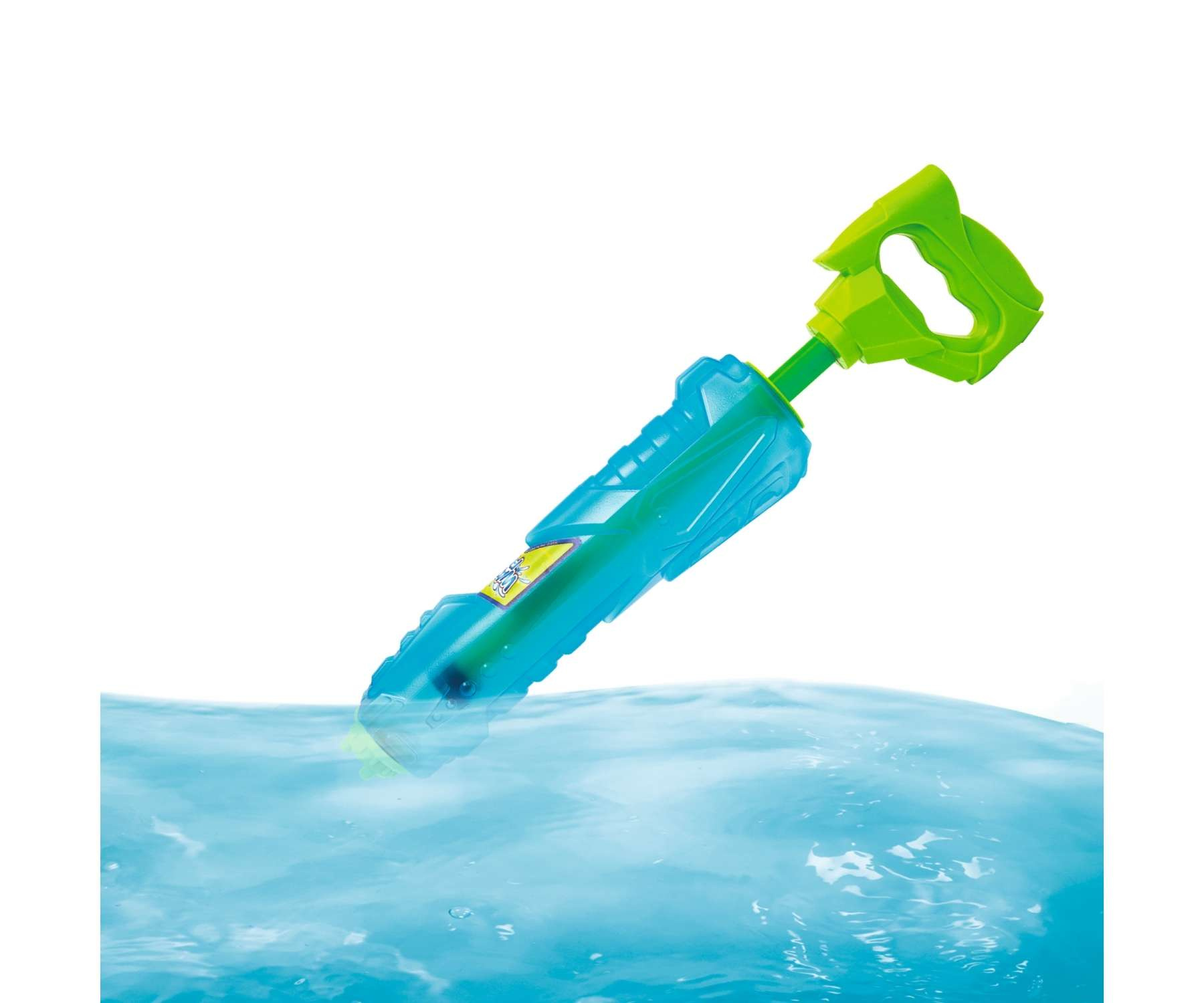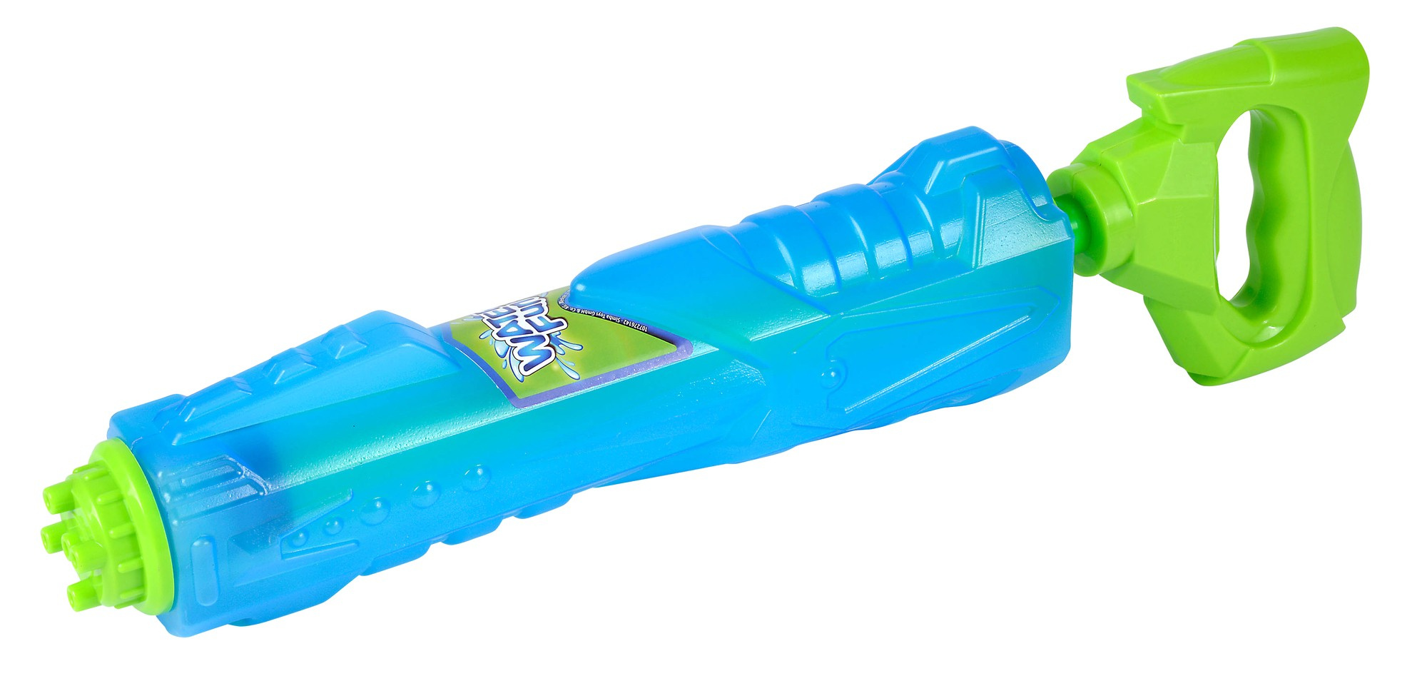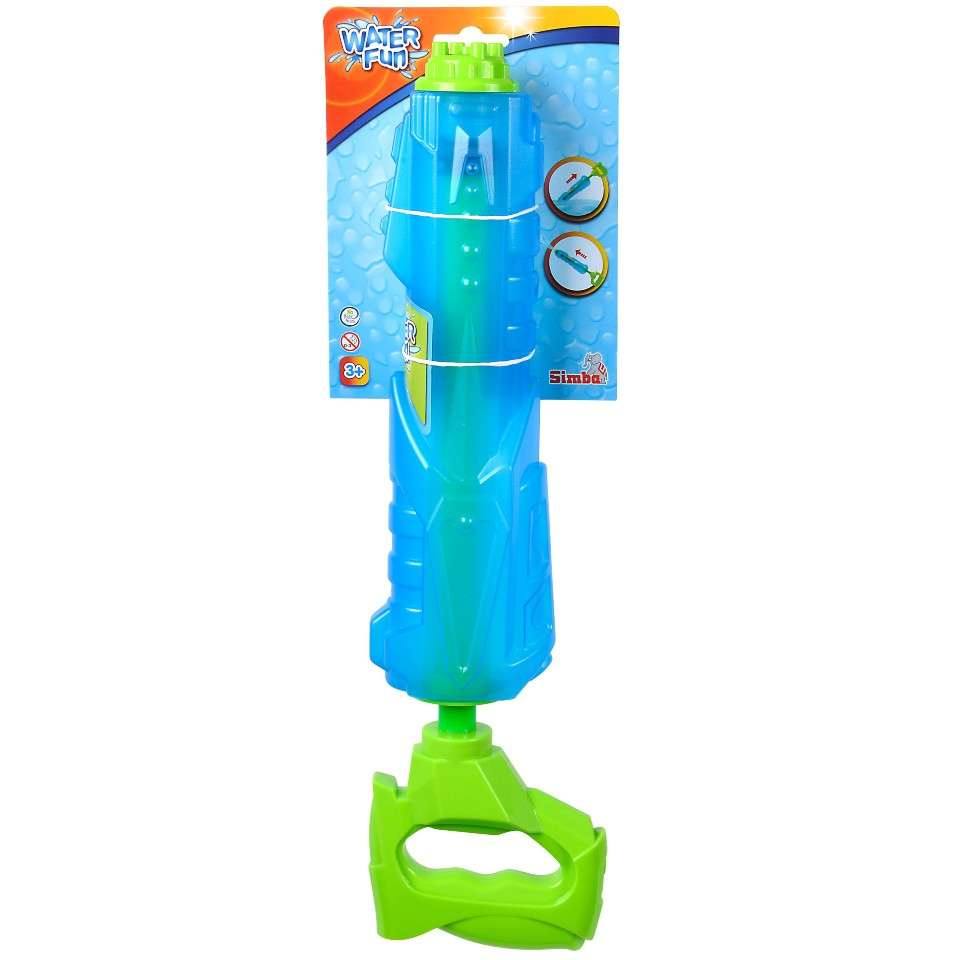 Kosmiczny pistolet wodny został wykonany z wysokiej jakości tworzywa sztucznego i ma ok. 45 cm długości. Jego niebieski zbiornik, o pojemności 2,25 l, jest półprzezroczysty, dzięki czemu widać ile wody pozostało jeszcze w zabawce. Zielony uchwyt umożliwia uzupełnienie wody oraz wygodne trzymanie broni, której zasięg wynosi aż 12 m!