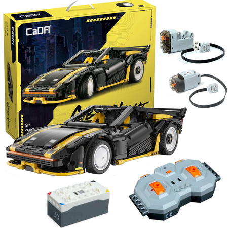 Klocki konstrukcyjne CaDA Zdalnie sterowany duży sportowy samochód wyścigowy 48 cm z napędem Pro Power System Wyścigówka Czarne Auto Pojazd RC 1586 elementów