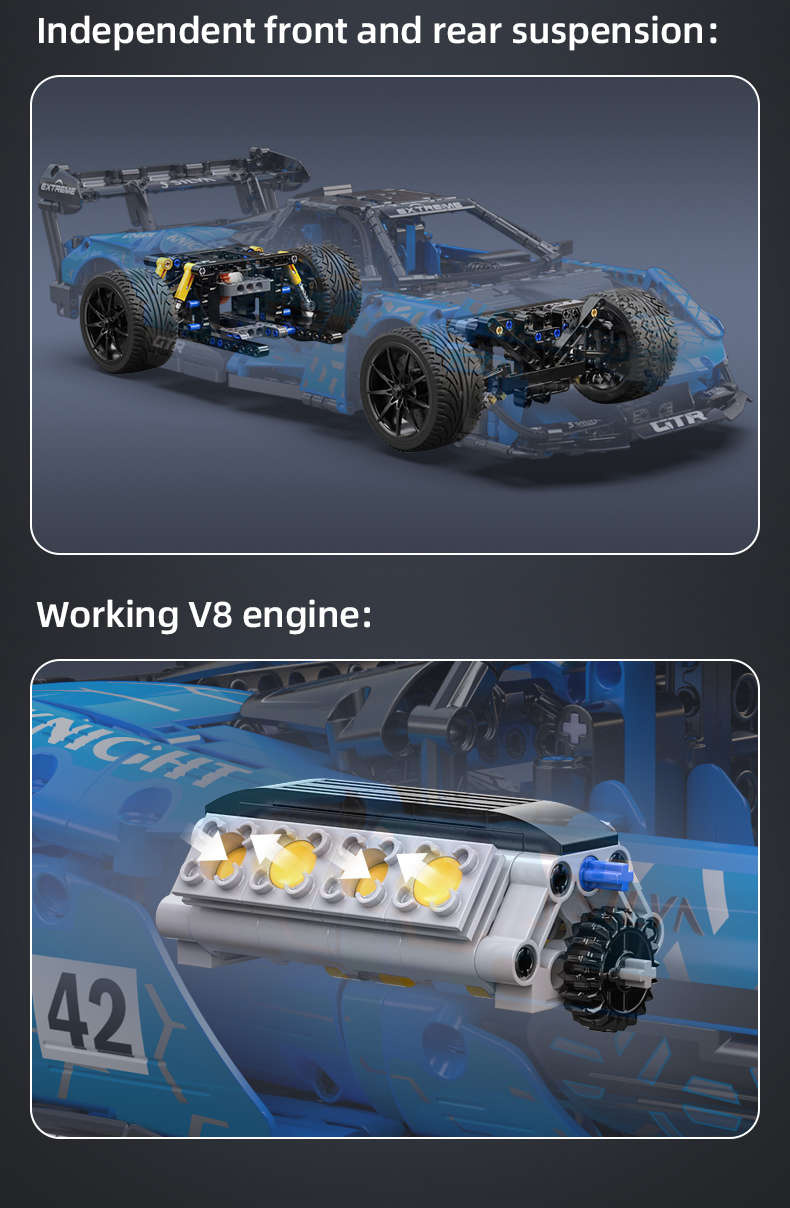 - Zestaw składa się z 2088 elementów i umożliwia samodzielne zbudowanie pojazdu Dark Knight GTR oraz napędu Power System do zdalnego sterowania pojazdów ze światłem LED.