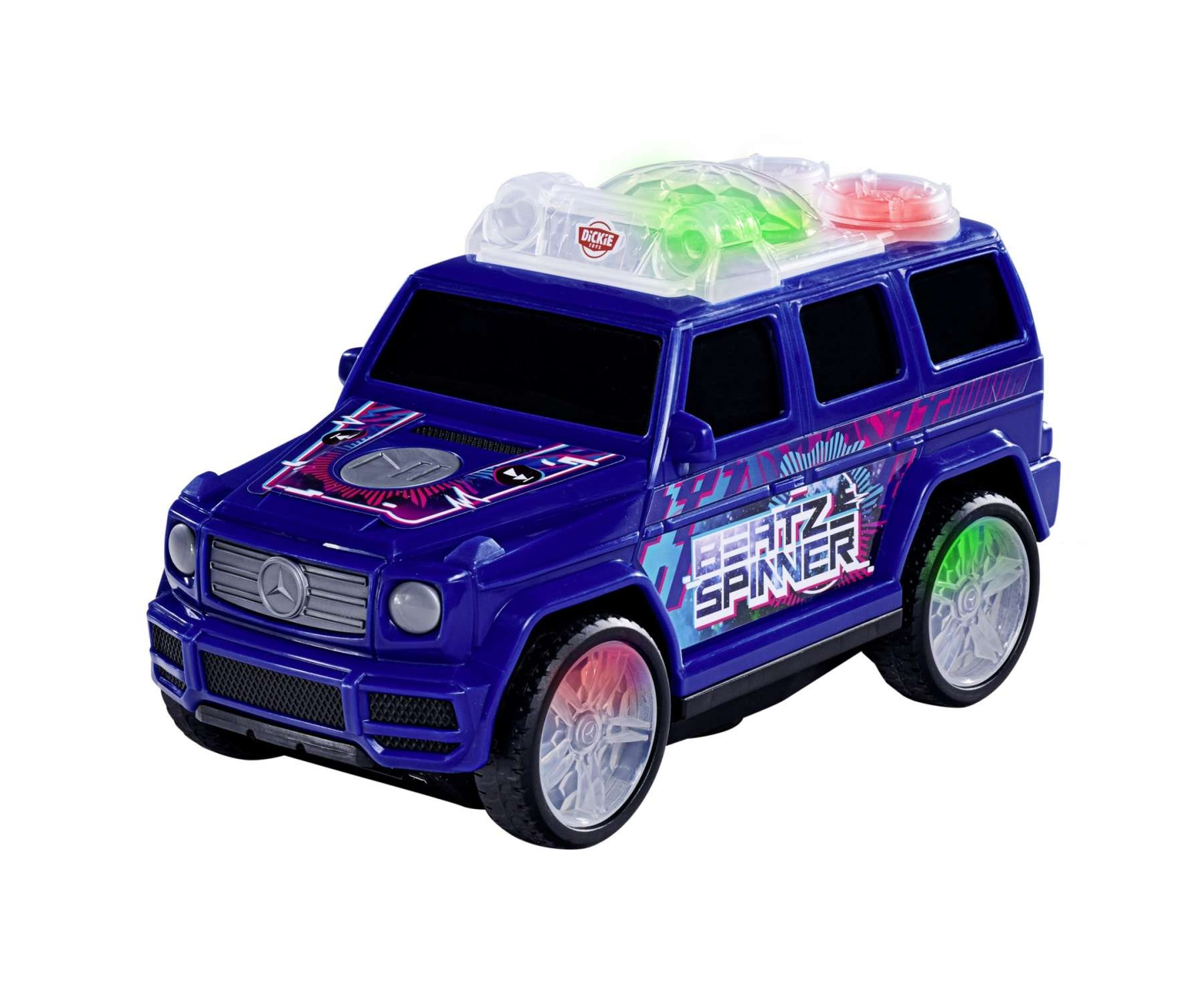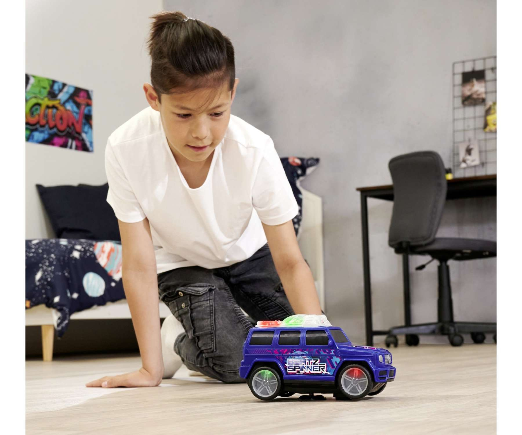 Muzyczny samochód Mercedes-Benz klasy G Beat Spinner (23 cm) – Dancing Streets'n Beatz to interaktywny pojazd, który po wciśnięciu przycisku kręci się, świeci i odtwarza muzykę elektroniczną.