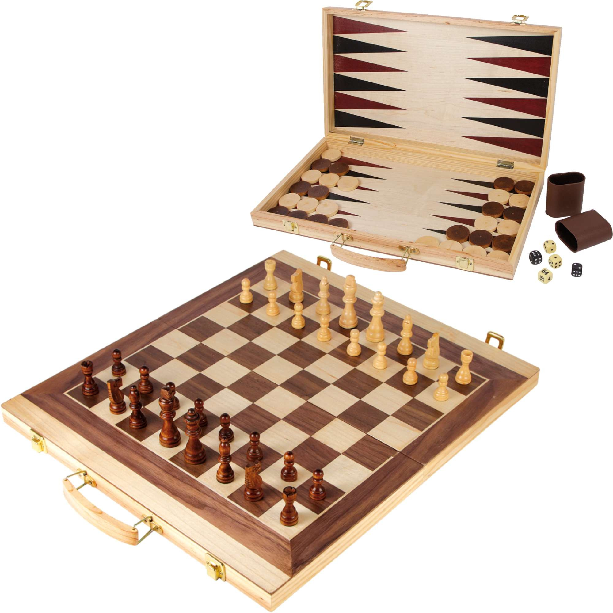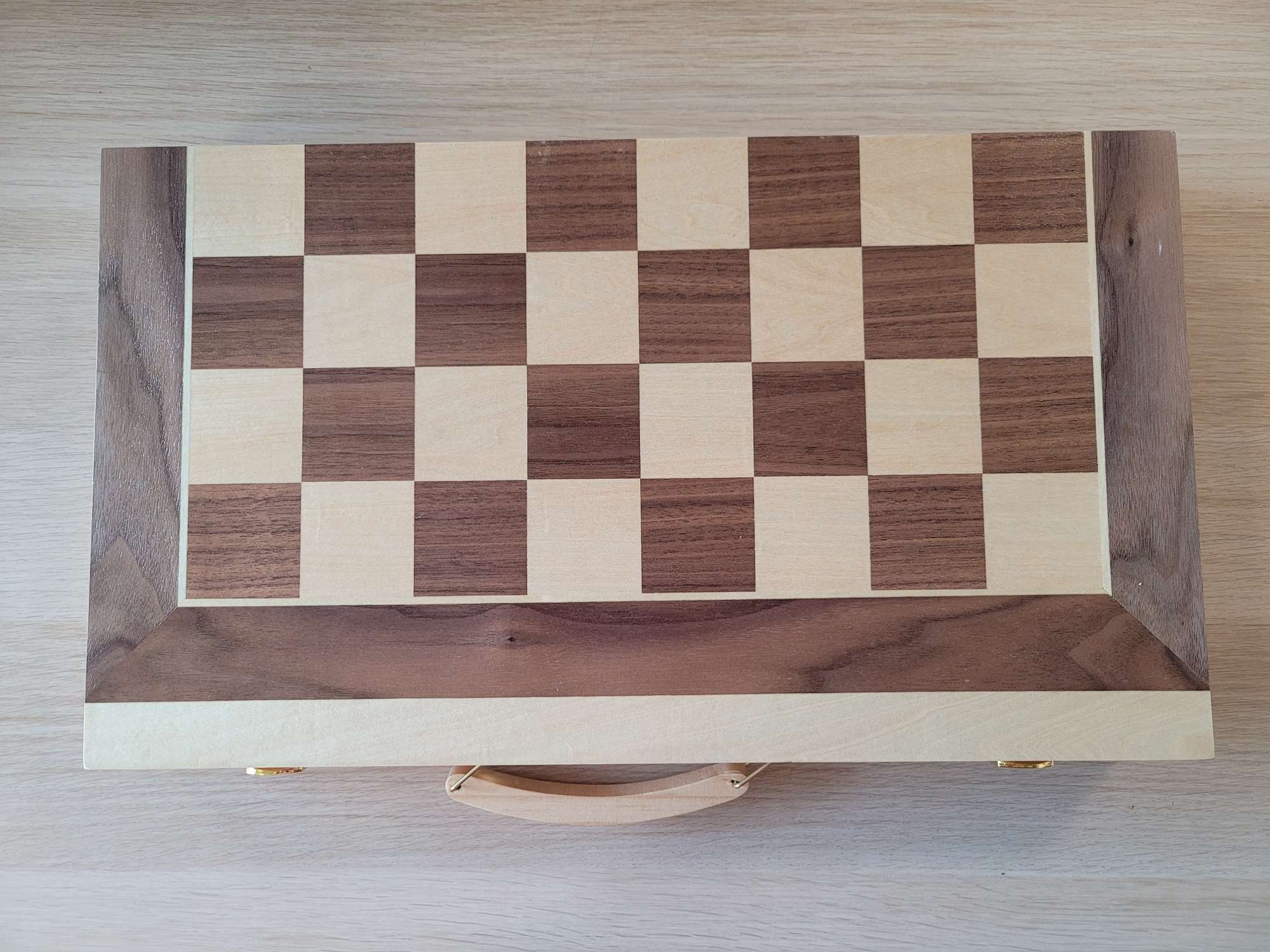Drewniane Szachy i tryktrak zestaw w skrzyni