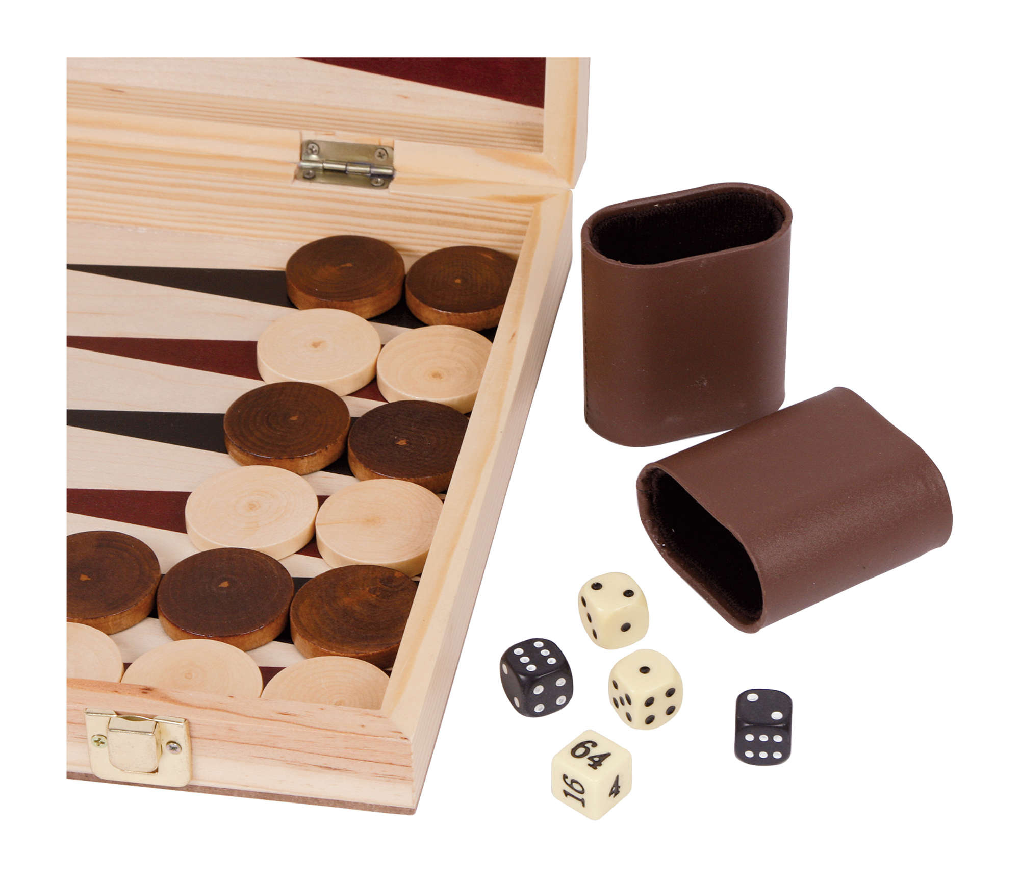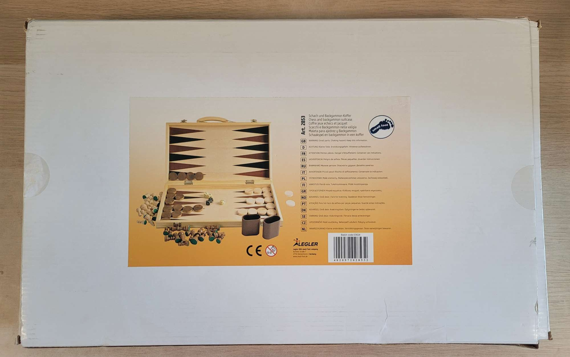 - Zestaw składa się z dwustronnej planszy, która jednocześnie jest pudełkiem, oraz pionków. Po jednej stronie znajduje się plansza do gry w szachy, a wewnątrz skrzynki znajduje się plansza do gry w tryktrak. Plansza składana i posiada wygodny uchwyt.