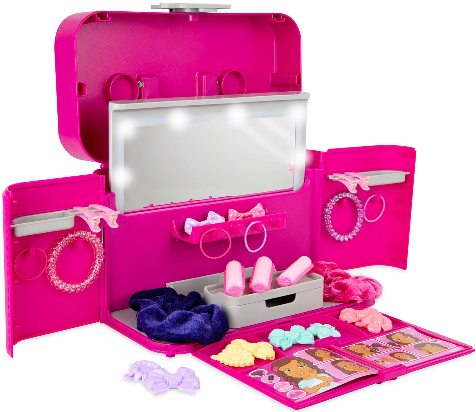Z akcesoriami oraz mini toaletką każda dziewczynka może wykonać sobie, swoim lalkom czy koleżankom unikalne fryzury przy użyciu prostych narzędzi.