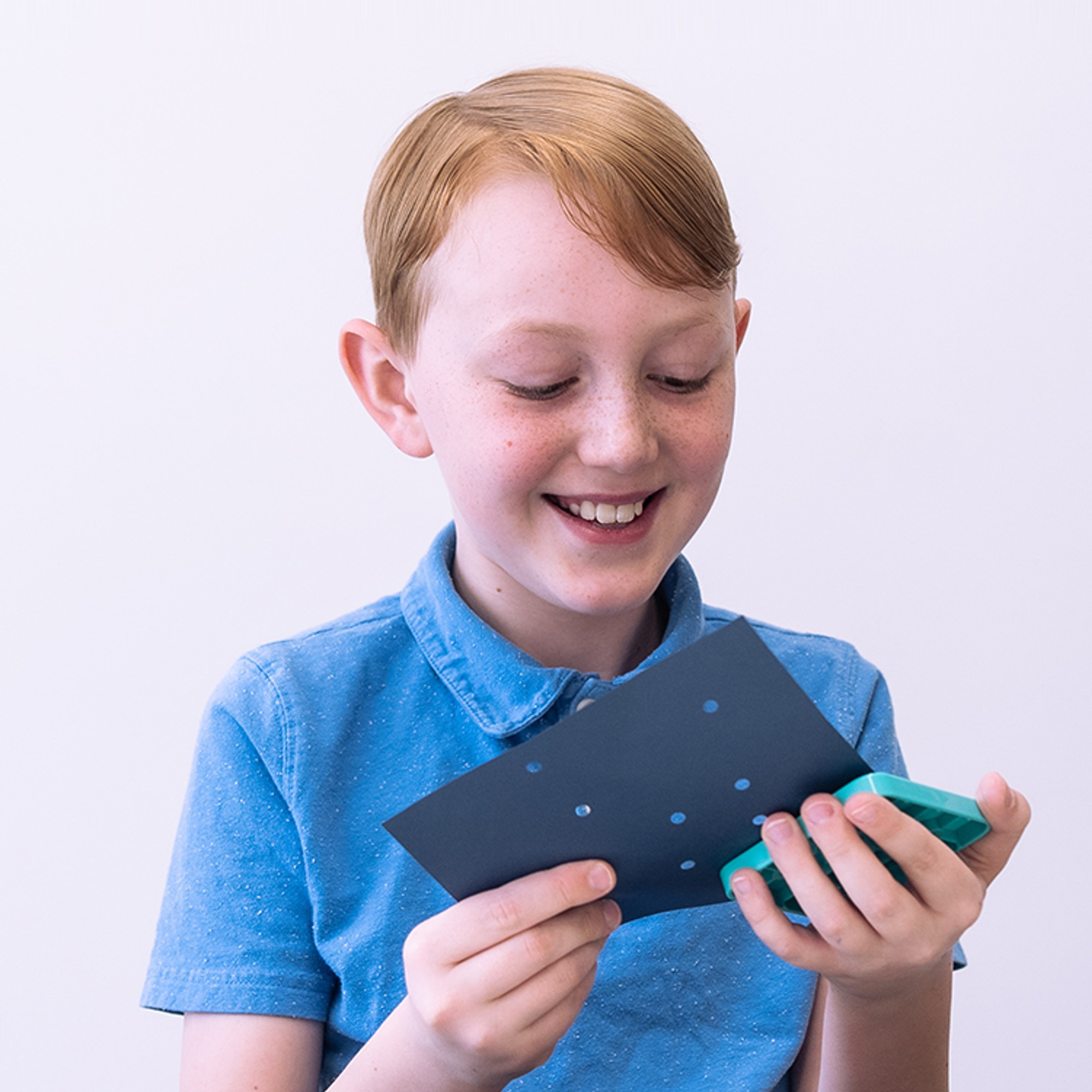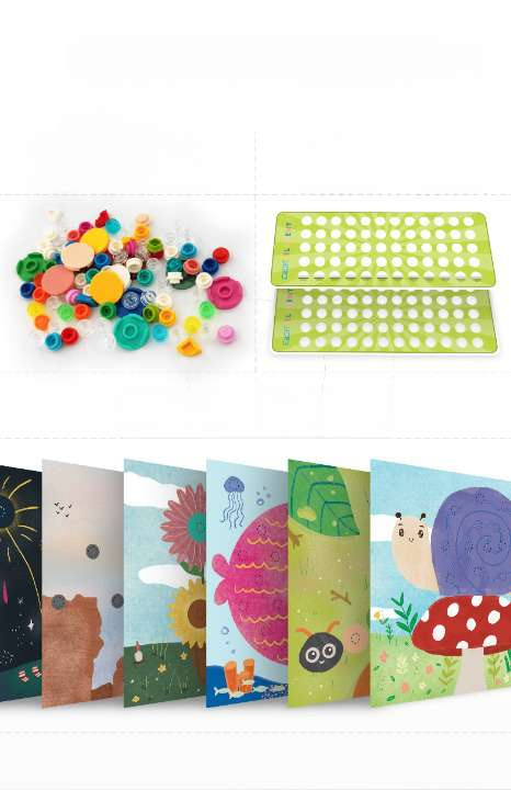 W zestawie znajdują się karty, które można ozdobić klockami. Wystarczy zrobić dziurki i uzupełnić je kolorowymi klockami!