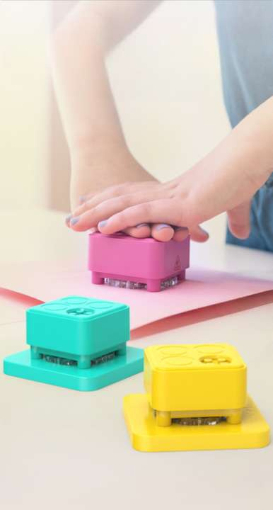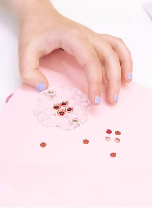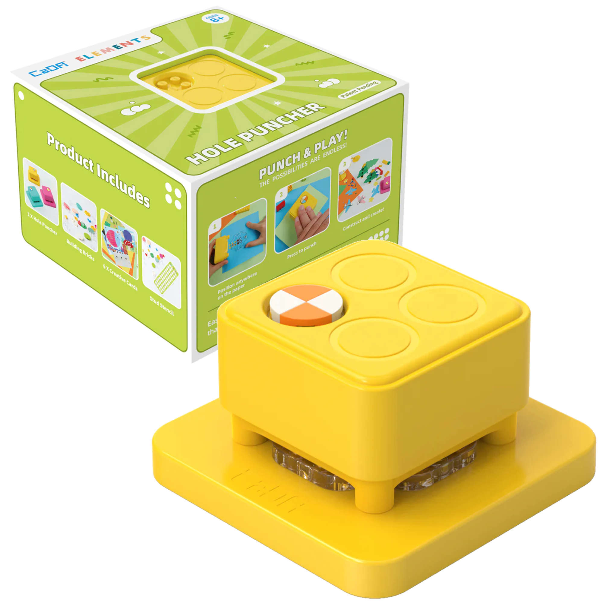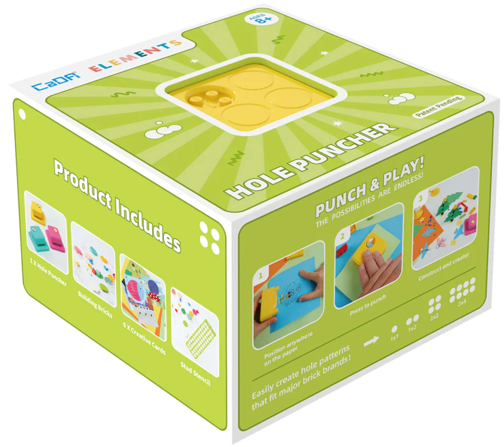 Zestaw składa się z 108 elementów i stworzony został ze szczególną uwagą na detale, które zapewnią niesamowitą zabawę. Dziurkacz jest w kolorze żółtym. W górnej części ma cztery kółka, z czego jedno posiada miejsce na ozdobienie klockami. Do urządzenia dołączona jest przezroczysta podkładka ułatwiająca korzystanie. Zawiera ona magnes i łatwo przyczepić ją do dziurkacza.