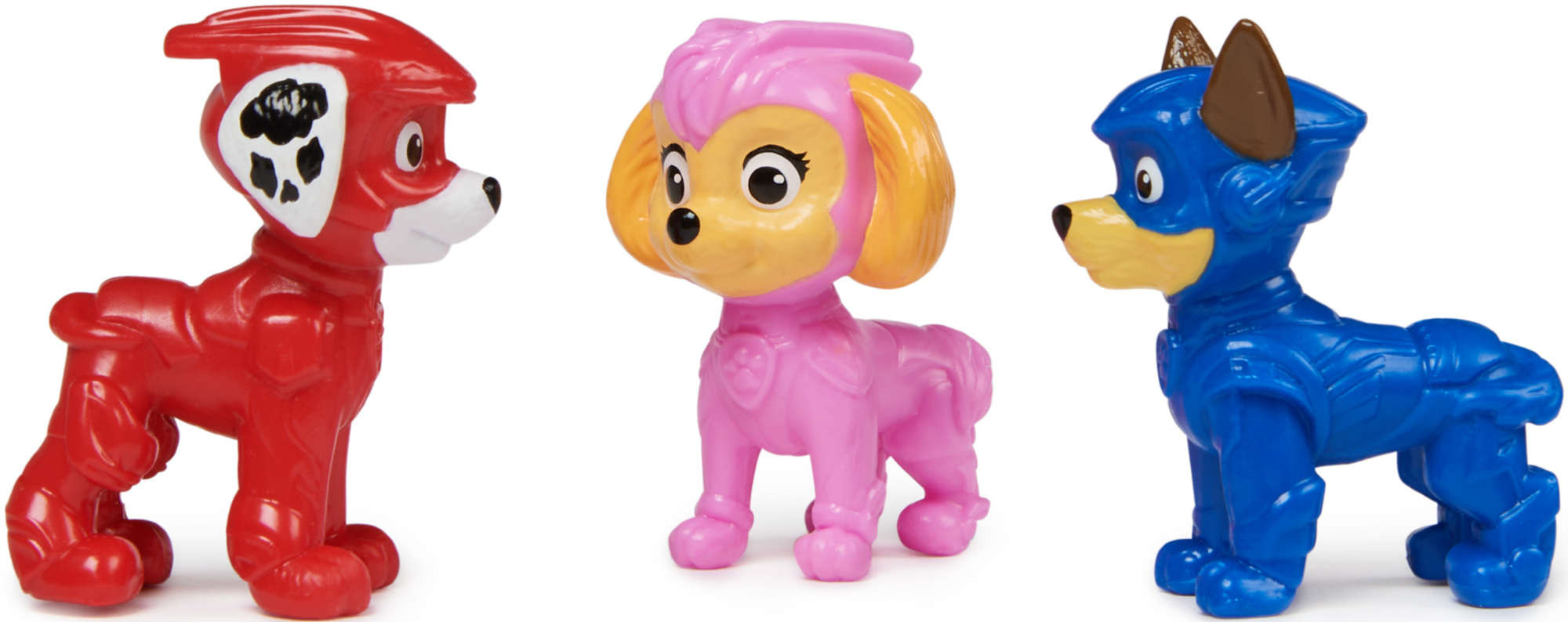 Figurki te to wierne kopie filmowych bohaterów, Skye - suczki rasy cocker spaniel, Chase - piesek rasy owczarek niemiecki oraz Marshall, uroczy dalmatyńczyk. Szczeniaczki ubrane są w charakterystyczne dla siebie stroje. Figurki zostały stworzone z wysokiej jakości materiałów sztucznych z bardzo dużą dokładnością i dbałością o szczegóły. Pieski mają 4,5 cm wysokości. Elementy figurek nie są ruchome.